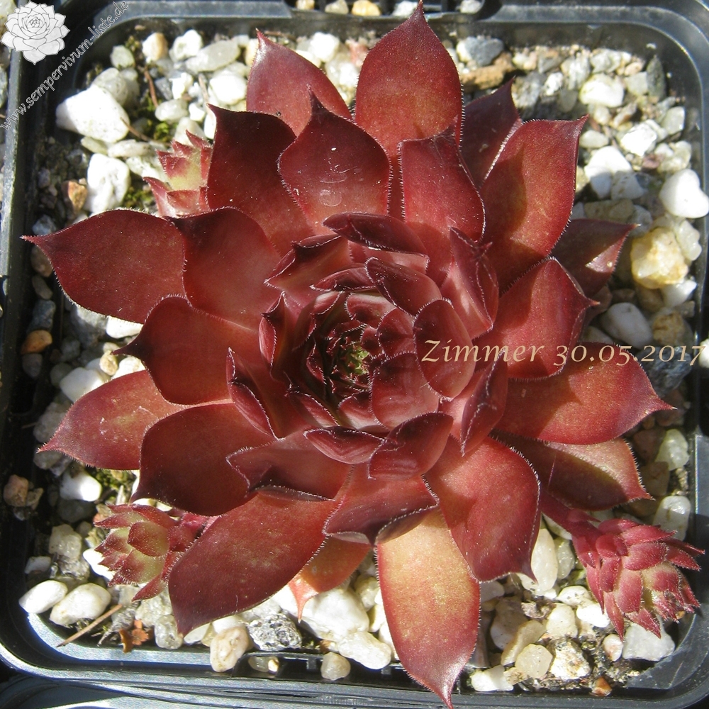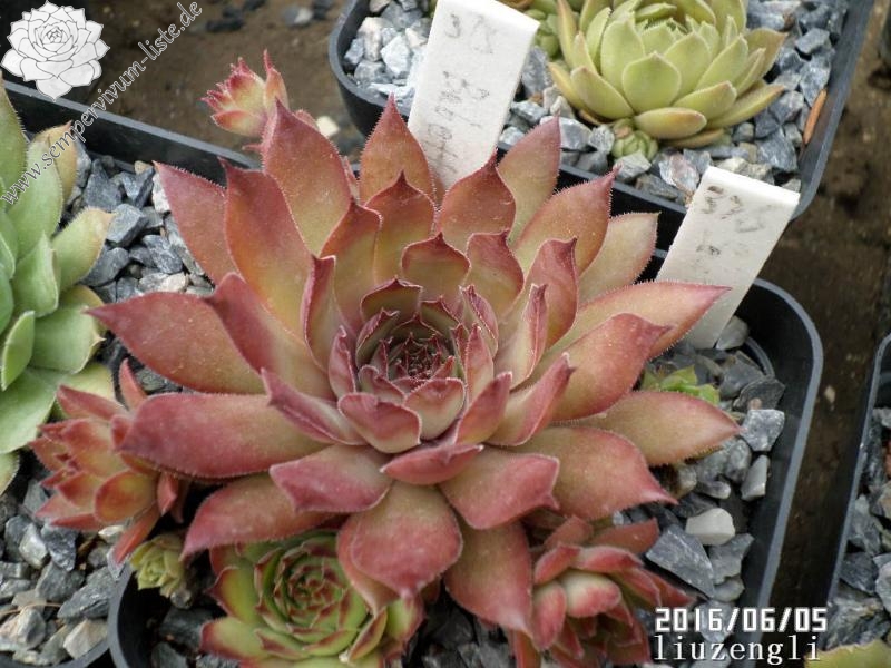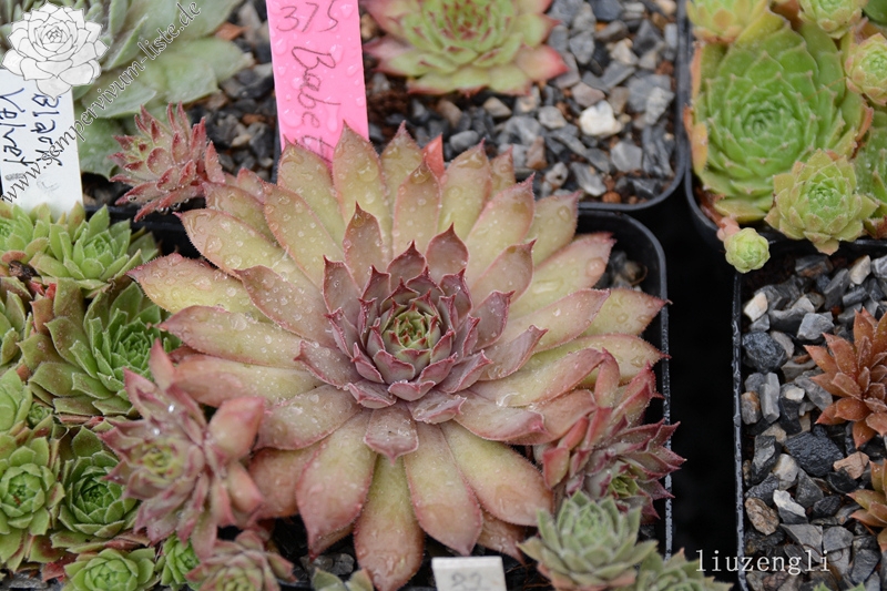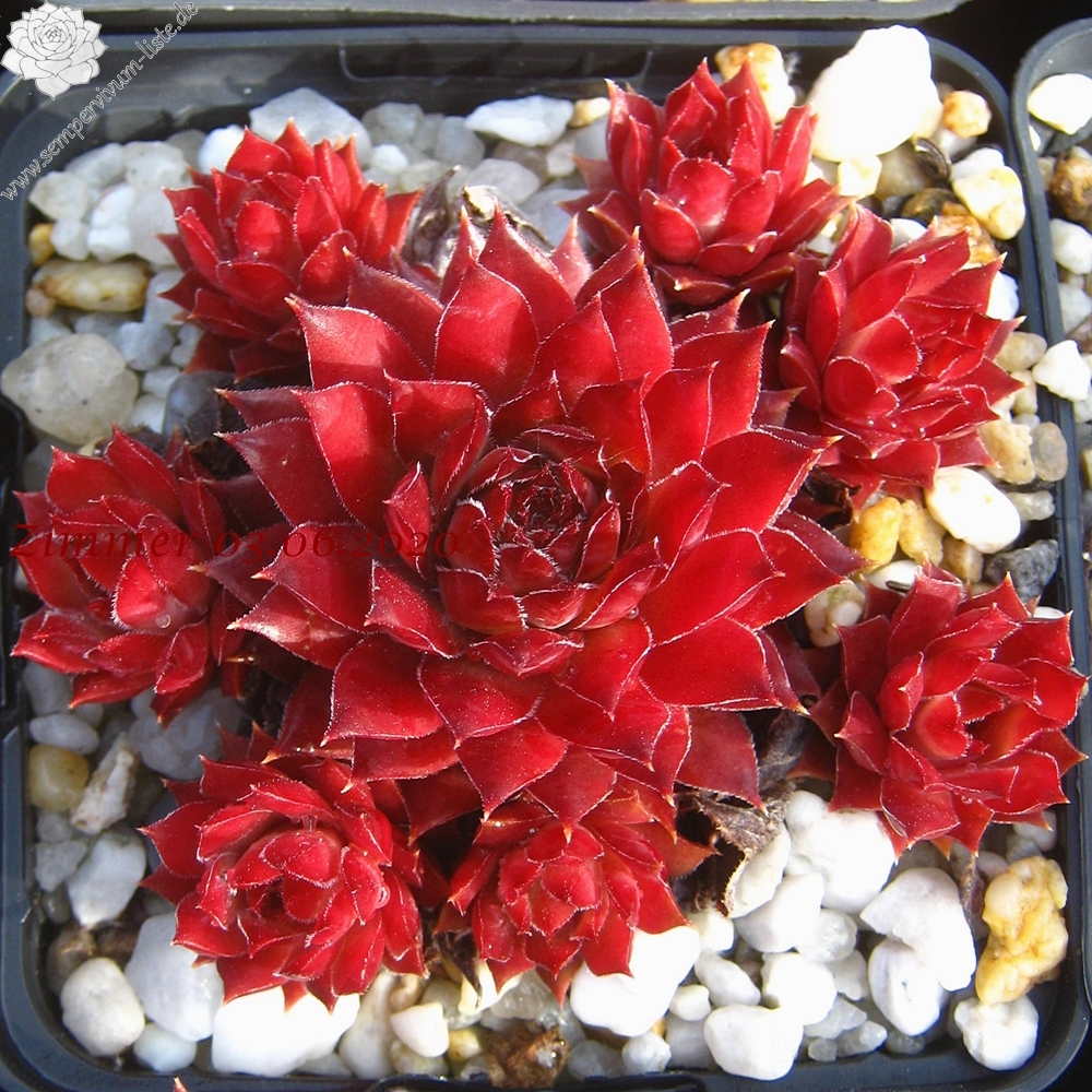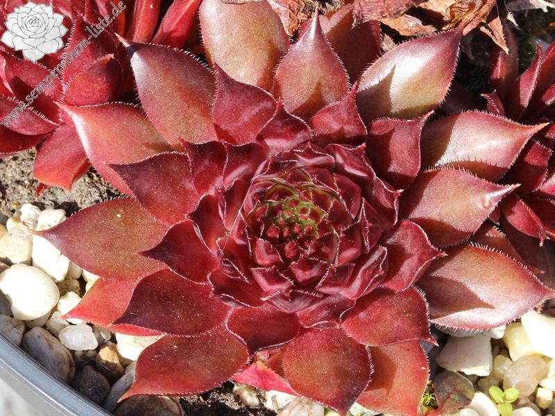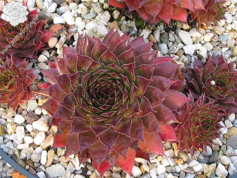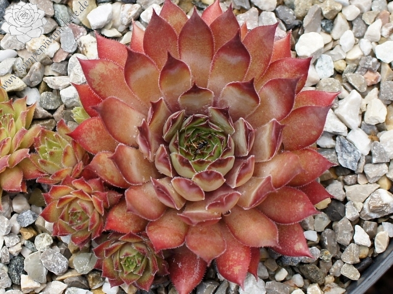 Mittelgroße, grüngraue bis pflaumenfarbene Rosetten mit roter Frühlingsfärbung. Besonders schön im Spätsommer!