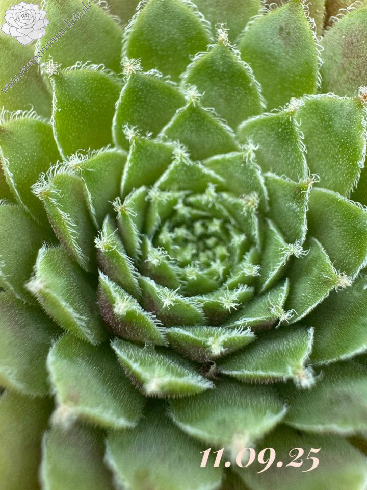 Rosettengröße: ca. 3 cm, Blüte: Rosa mit einem Hauch Weiß, kräftig dunkelpinke Staubblätter und Stängel ![]()