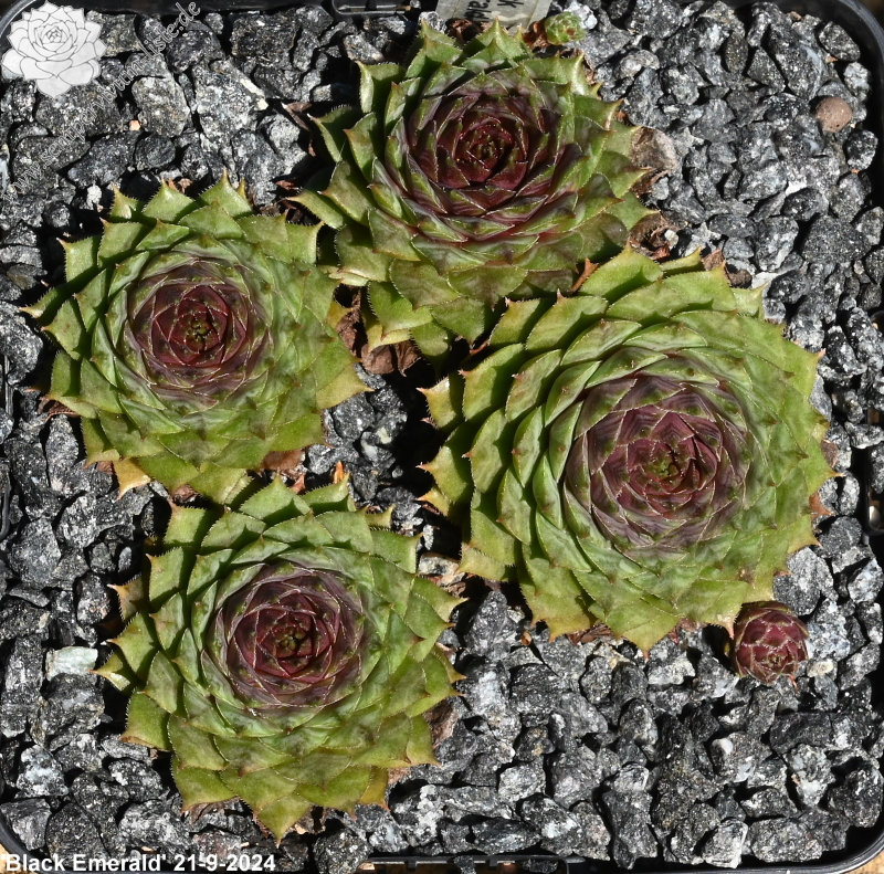 Die Mutterpflanze vieler Neuzüchtungen der letzten Jahre war lange Zeit unter falschem Namen in Kultur und erhielt daher von mir einen passenden Namen: weinrote Rosetten mit deutlich abgesetzten smaragdgrünen Spitzen. Im Frühling mit bläulich-violettem Schimmer!