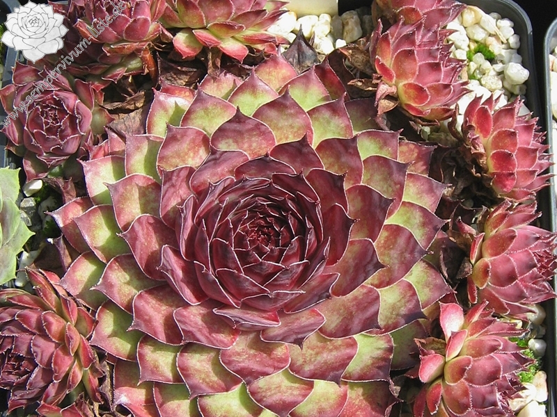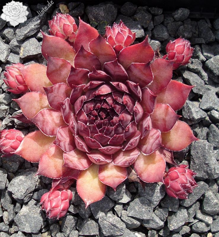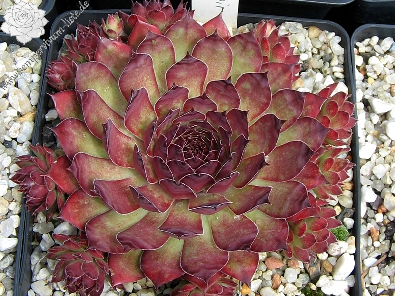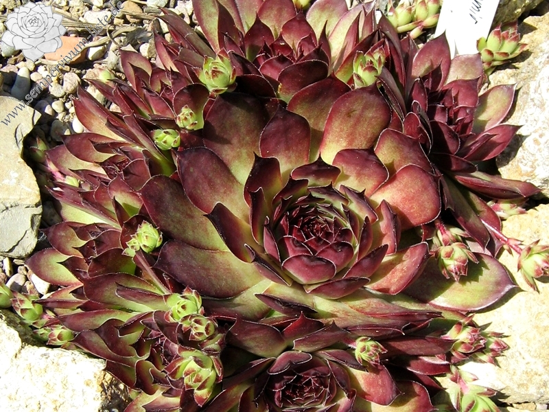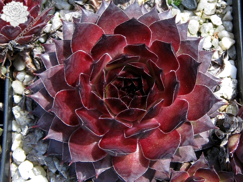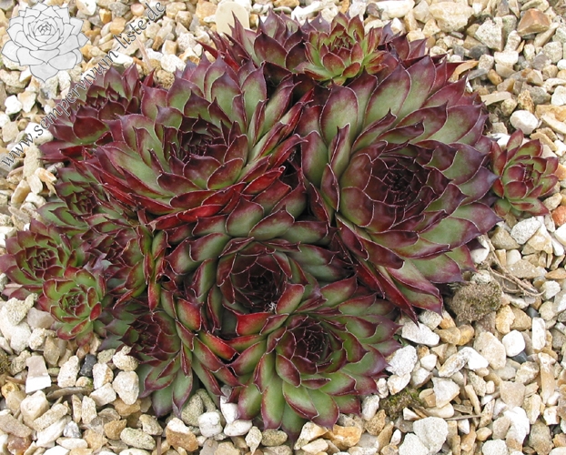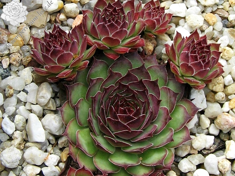 mittelgroße Rosetten, dunkel glänzende, blaugrüne Blätter mit roten Spitzen