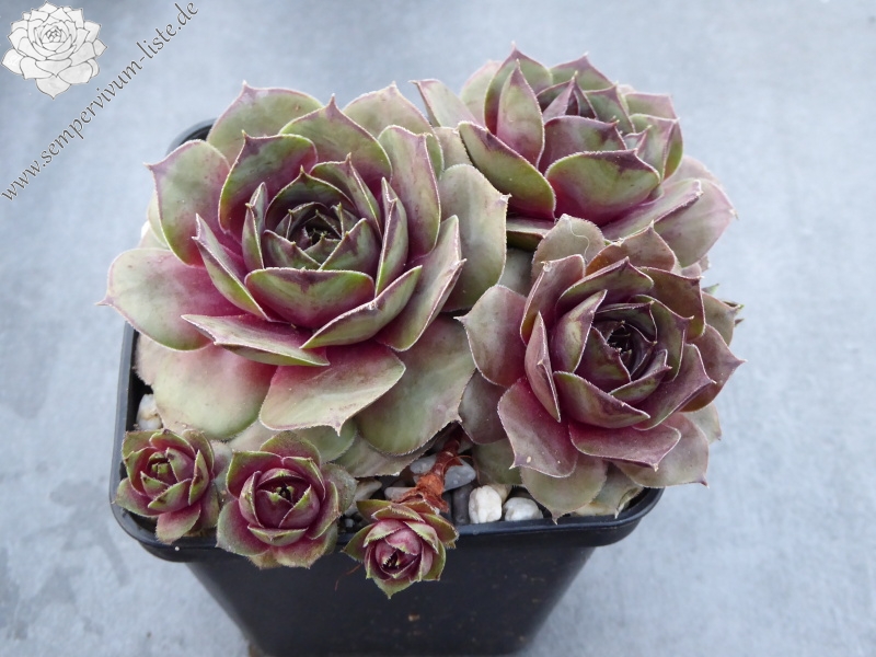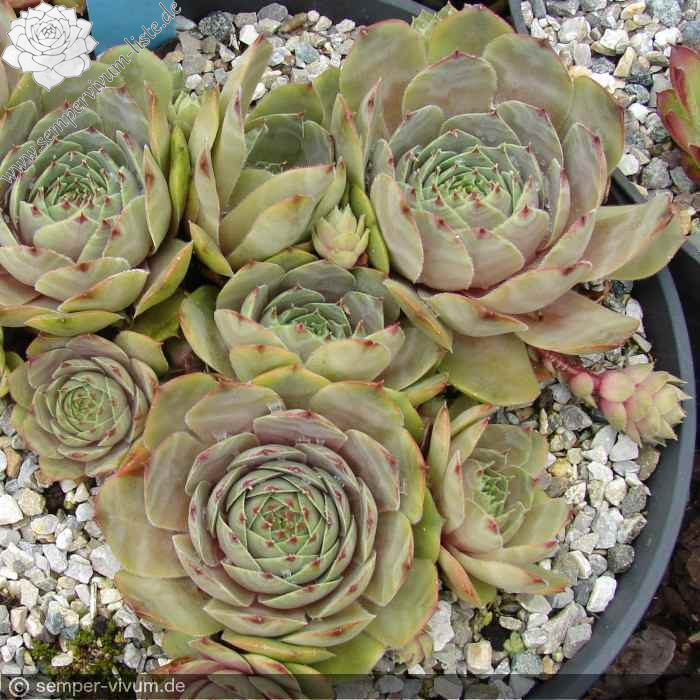 Die hübsche Namenssorte hat große Ähnlichkeit mit 'Rita Jane'. Aus ihren dicken Blättern formt sich eine größere auffallend sukkulente Rosette mit olivgrünen, grauen und pastellvioletten Farben.