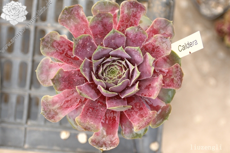 Die größte Hauswurz in meiner Sammlung: bis zu 18 cm große Rosetten mit breiten, fleischigen Blättern. Im Frühling herrlich rosapurpur mit breit gezeichneten graurosa Spitzen. Eine Caldera ist das spanische Wort für Kessel und steht für eine kesselförmige Struktur vulkanischen Ursprungs.