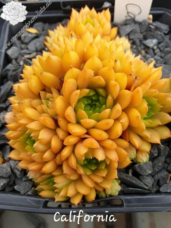 relativ kleine, sternförmige Rosetten mit orange-oliv getönten Rosetten, bildet dichte Polster, wüchsig