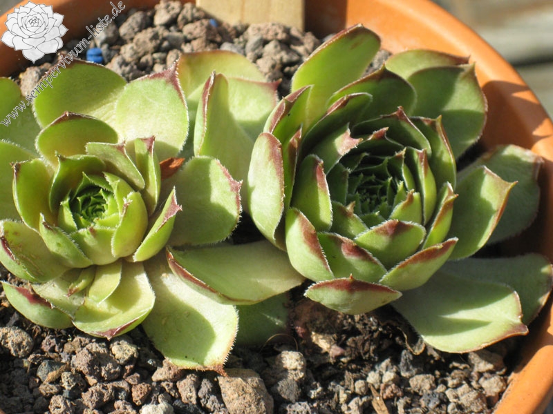 Ros. 5-7 cm, gelbgrün, breit, braune Spitzen