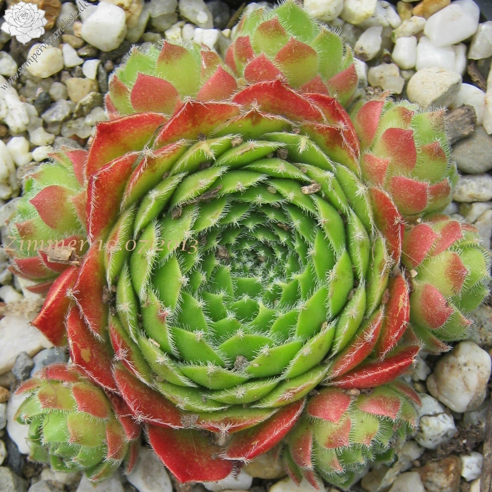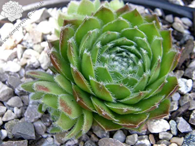 Ros 3 cm, grün, bewimpert, rotbraune Spitzen