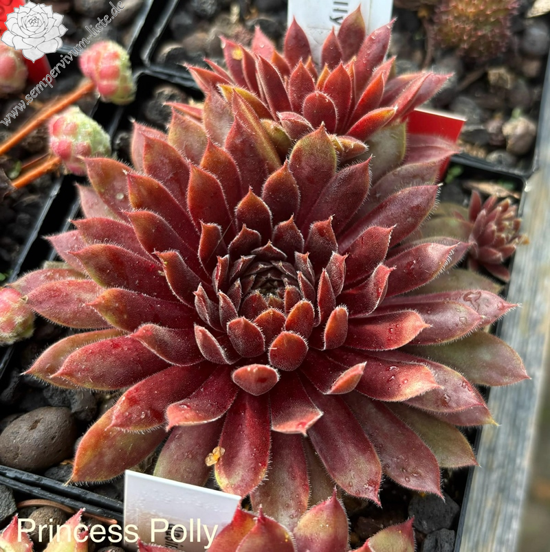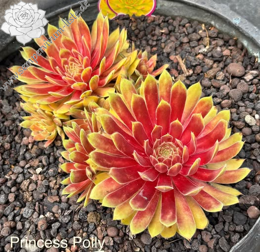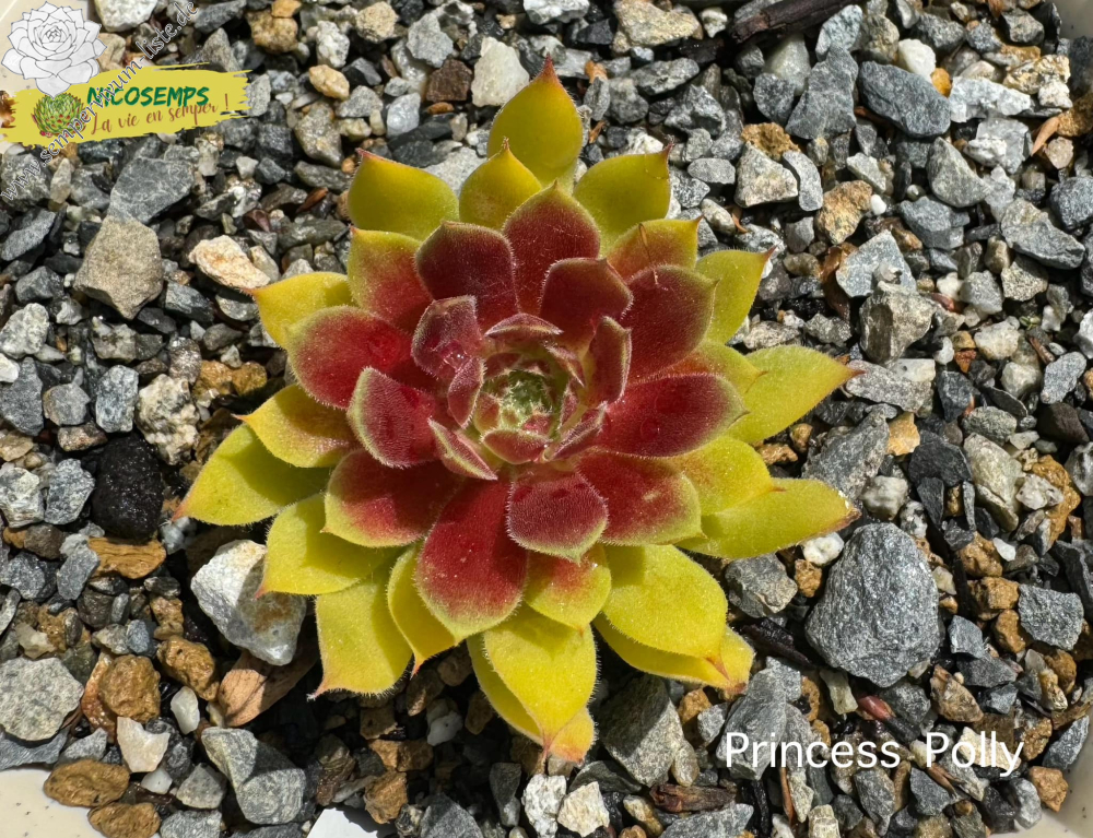 The Chick Charmlettes series of miniature Hen & Chicks are every bit as colorful, vigorous, and cold hardy as their larger flock members, just smaller! These little Chicks were selected to remain small and work great in tight places. The vivid yellow rosettes of Sempervivum Chick Charmlettes 'Princess Polly' show ruby-red centers or red leaf tips, depending on the season. PPAF