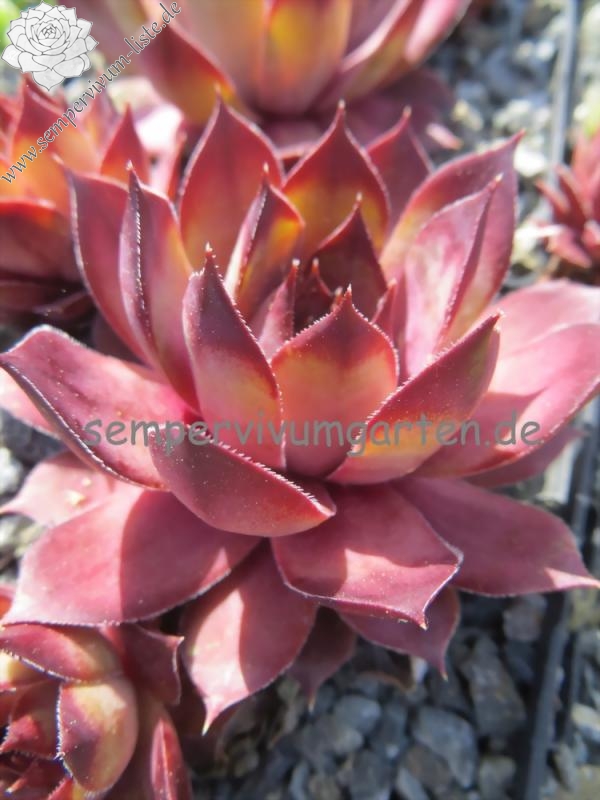 Ein größerer, robuster Hauswurz, welcher ganz edle Rosetten bildet und breite, sehr fest wirkende Blätter besitzt. Im Sommer färben sich die Rosetten heller und die Blattenden heben sich noch schöner von der Grundfärbung ab. Sehr zu empfehlen!
