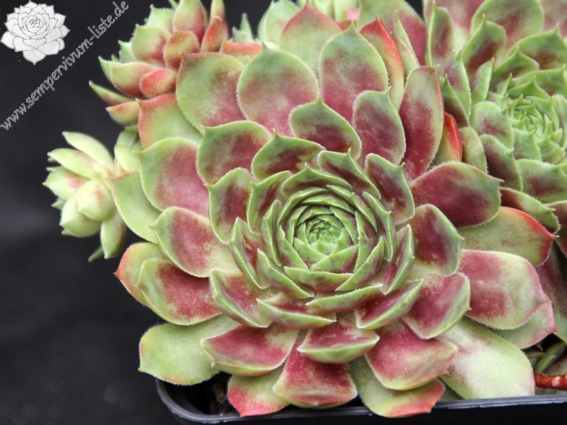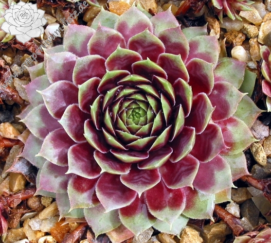 Rosetten 5 cm, dunkelrosa, grüne Spitzen, breit, im Winter dunkelrot