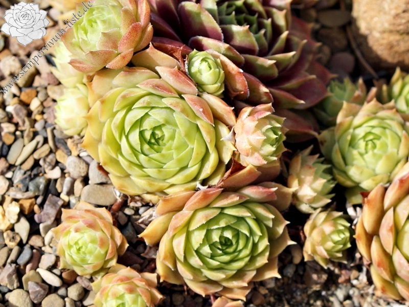 Sempervivum 'Cororo' bildet schöne, graugrüne Rosetten, mit leuchtend roten Blattenden. Ein sehr robuster und wüchsiger Dachwurz!