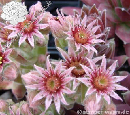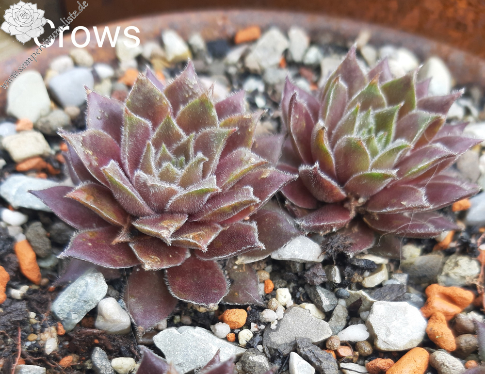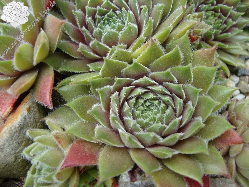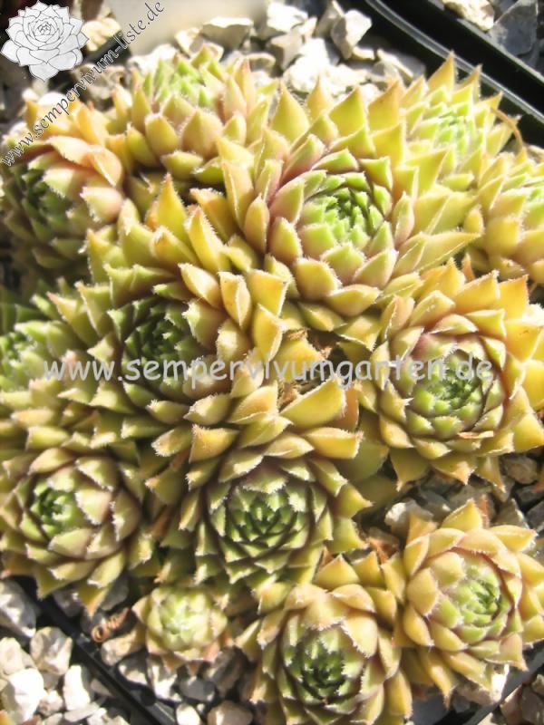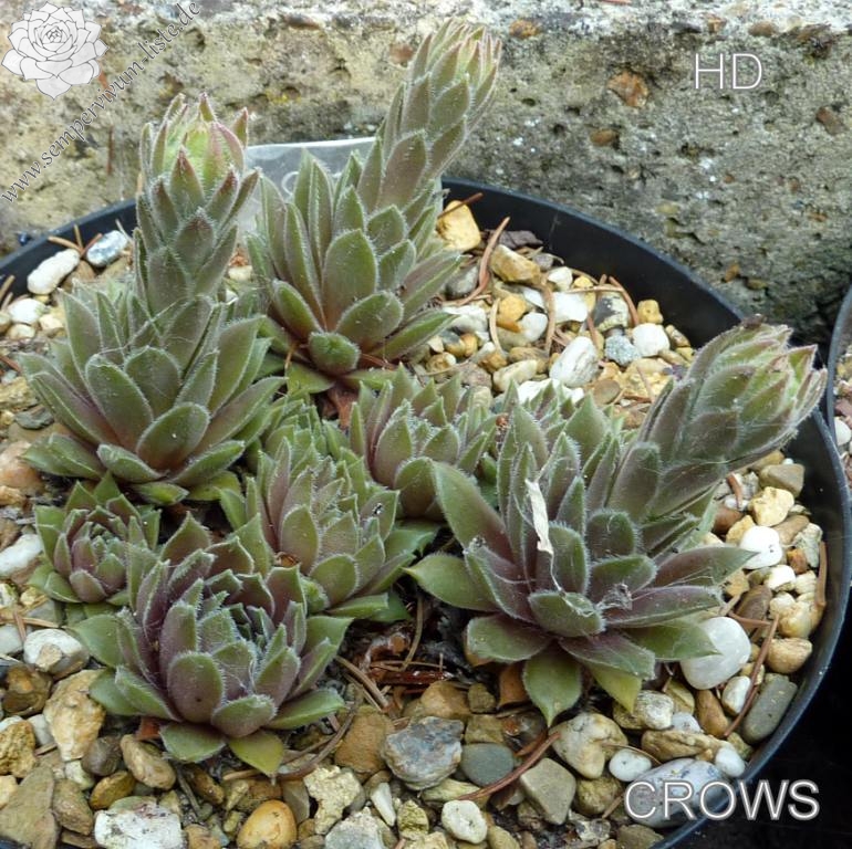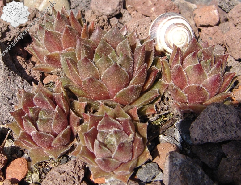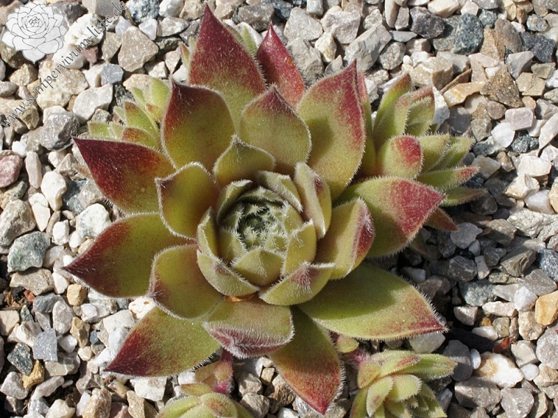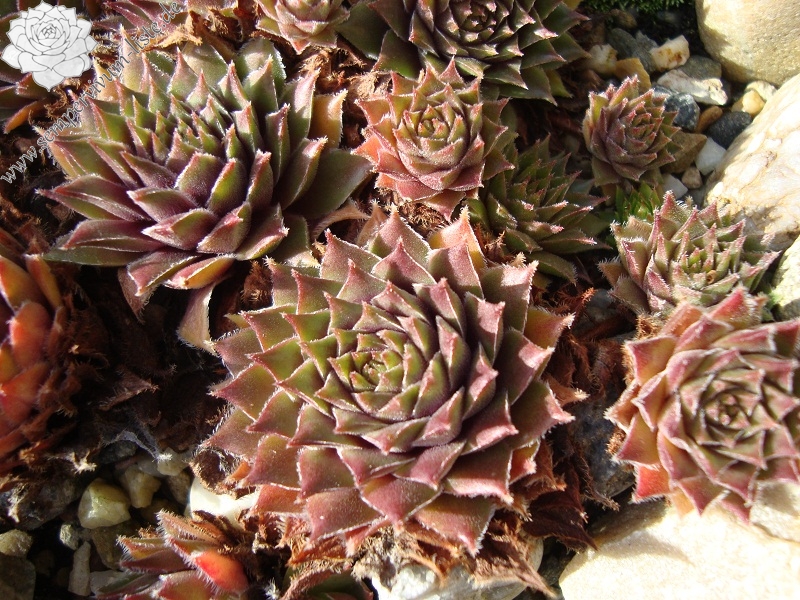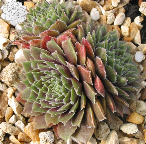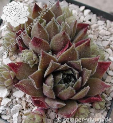 Kleine, relativ spitze Rosetten in olivgrünem Braun mit rosa und violetten Tönen während der Frühjahrsfärbung. Bildet kompakte Polster und ist gut wüchsig.
