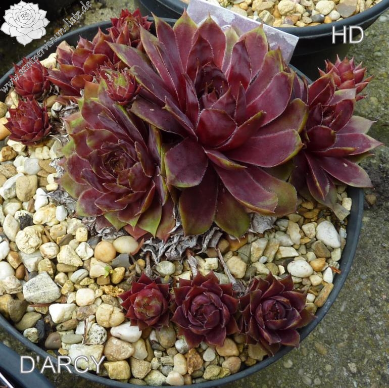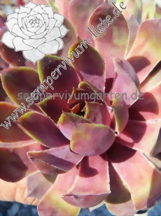 Sempervivum 'D'Arcy' bildet größere Rosetten. Sie sind rosa gefärbt und besitzen hellgrüne Blattränder. Im Sommer ist die Färbung etwas verschwommen - sehr interessant! Die großen Rosetten sprossen gut.