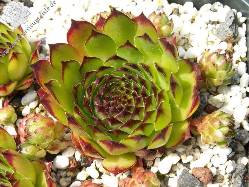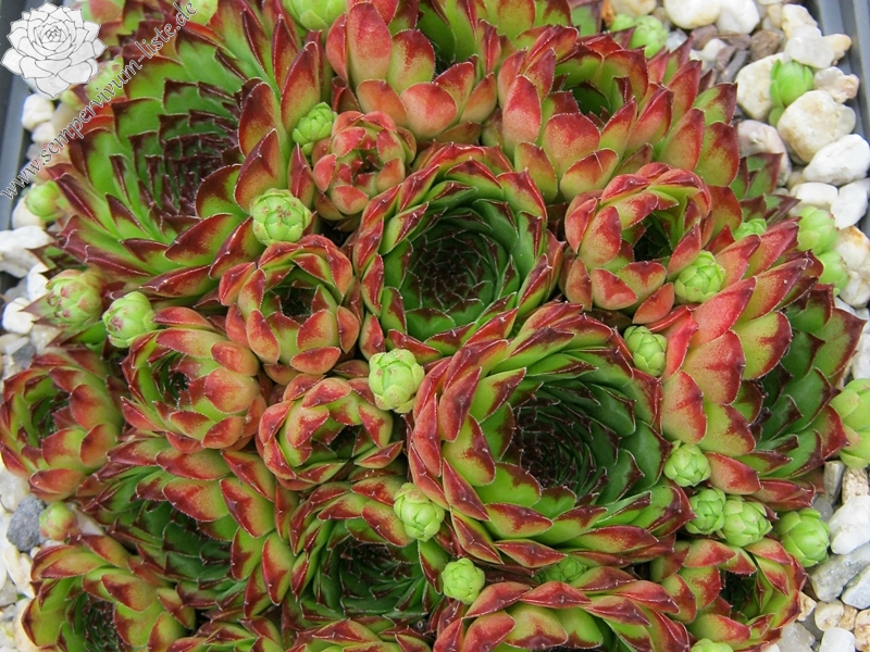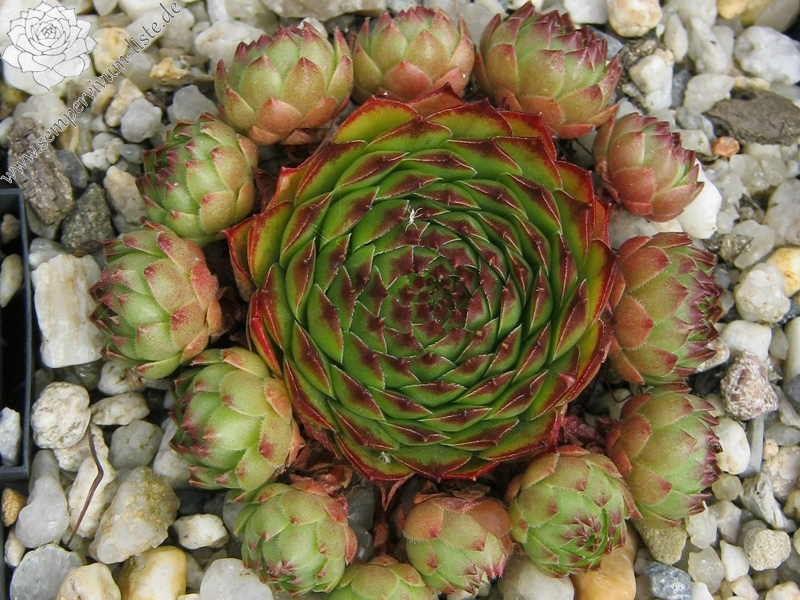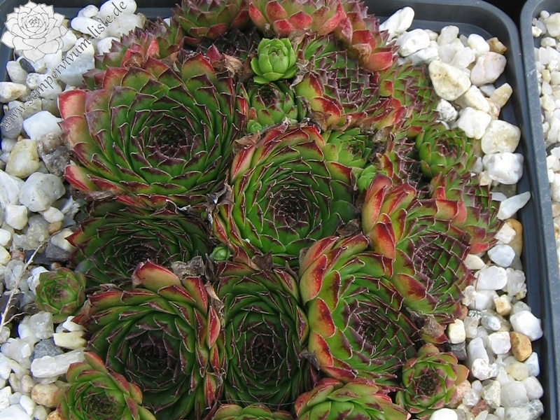 Ros. 3-4 cm, grün mit braunen Enden, flach