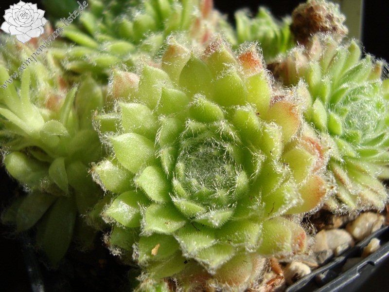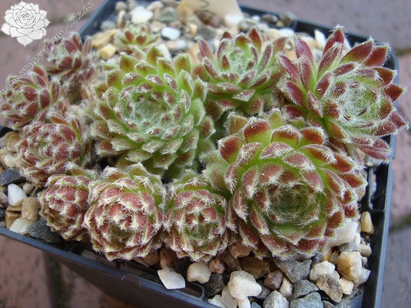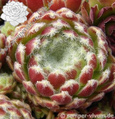Ein absolutes Muß für jeden Sempervivumsammlung: Besonders attraktive, runde Rosetten, deren Zentrum sich deutlich nach innen wölbt. Die Blattenden besitzen auffallend weißen Haarbüschel wodurch die Pflanzen plüschig wirken - noch dazu sehr wüchisg!