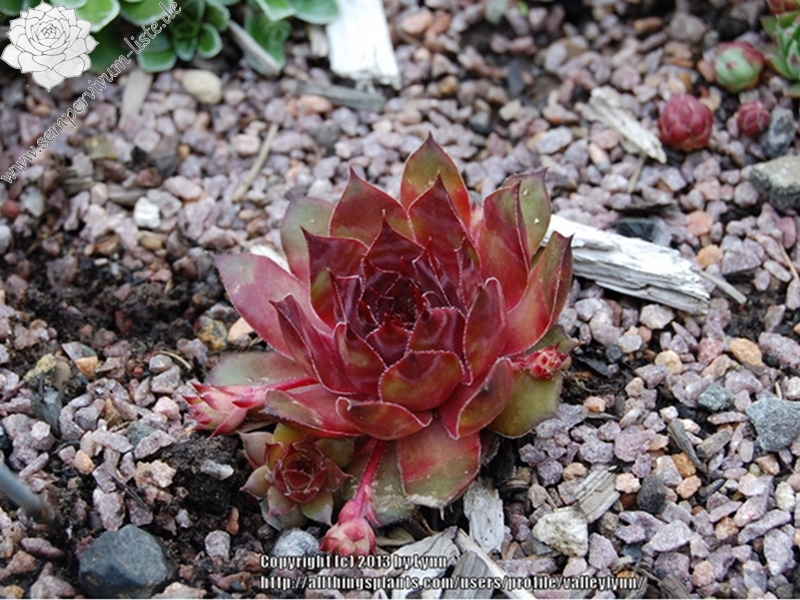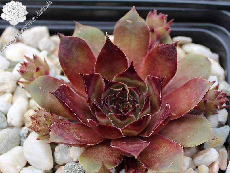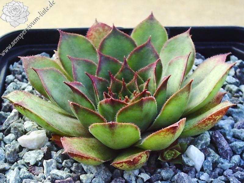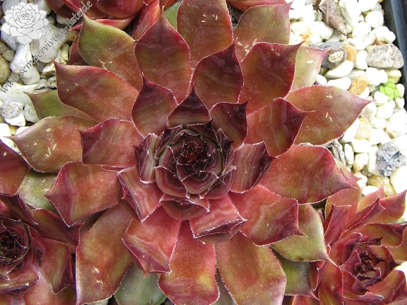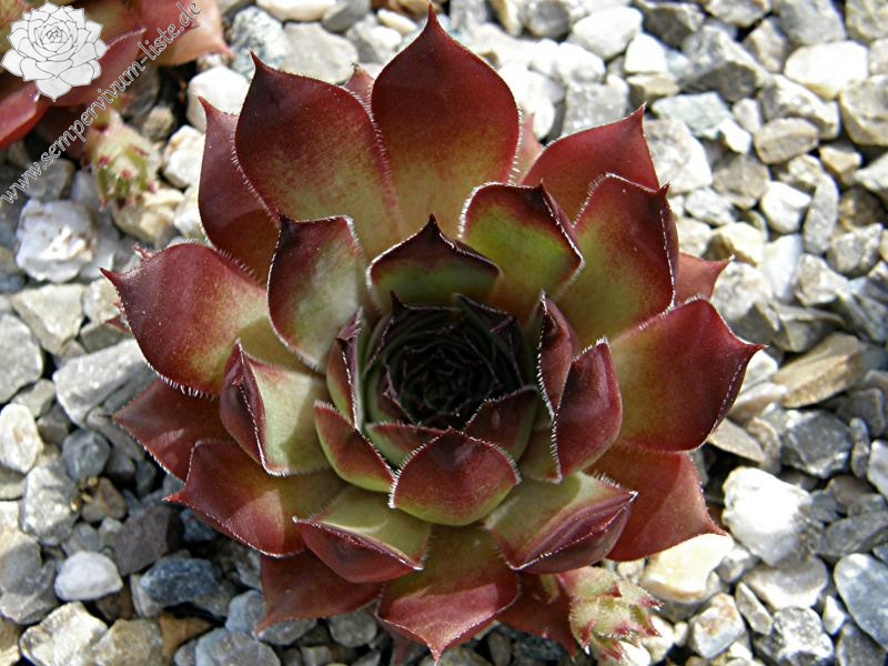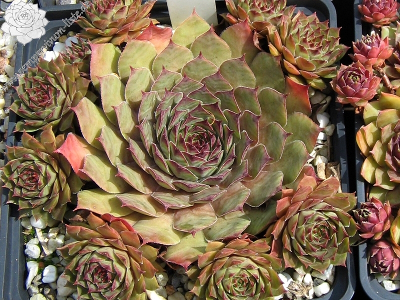 Die Rosetten von diesem Hauswurz zeigen besonders im Frühjahr eine kräftige Färbung. Die mittelgroße Sorte ist gut wüchsig.