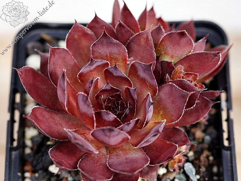 Wir haben lange überlegt, ob wir dem Sämling von 'Red Shadows' einen Namen geben. Es gibt öfter bekannte Sorten mit ähnlicher Färbung. Gerade im zeitigen Frühjahr ist unsere Auslese von vergleichbaren Sorten wegen der eher kugeligen Rosetten zu unterscheiden. Zudem geben dem 'Dornröschen' die abrupt aufgesetzten Blattspitzen einen reizenden Auftritt und letztendlich auch den passenden Namen.