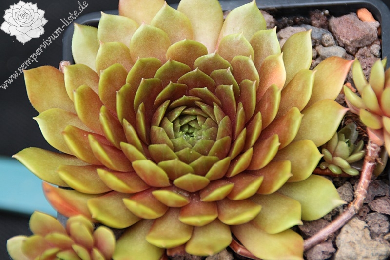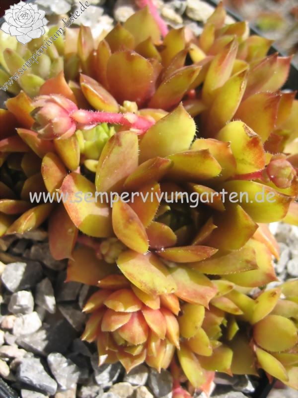 Ein richtiger Goldschatz aus Belgien: Relativ große Rosetten, die während des Jahres Ihre Färbung mit honigfarbenen, orangen und rosaroten Tönen mischen. Die glänzenden Blätter wirken, als wären sie mit Wachs überzogen. Die Tochterrosetten sitzen an etwas längeren, rosaroten Stolonen. Ein neuer Favorit in unserer Sammlung!