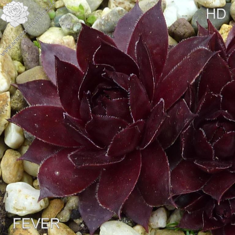 Rosetten bis 8 cm, Blätter lanzettlich. lang bespitzt, signalviolett. Es erscheint auch 'FEVER ' als Synonym in Sammlungen