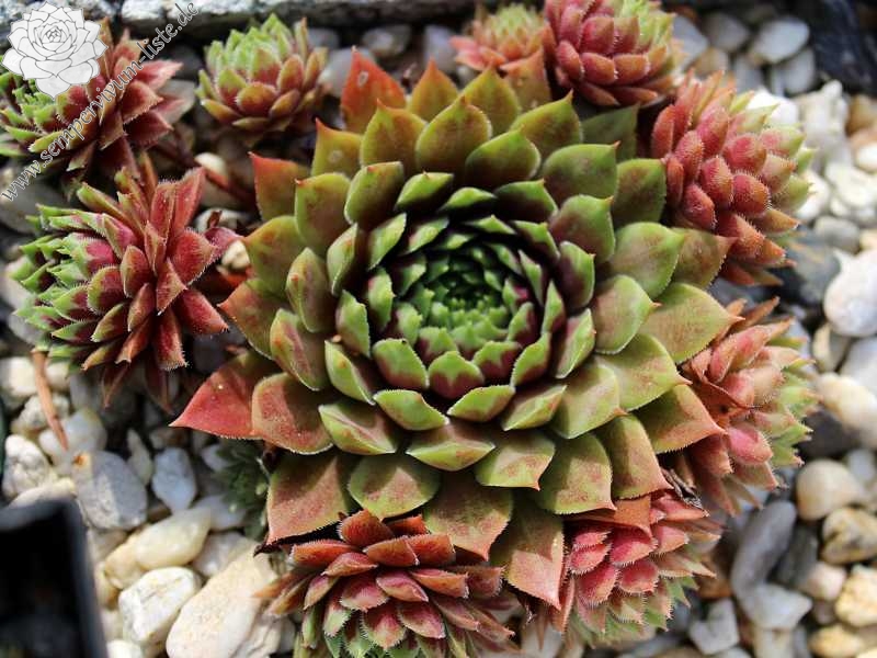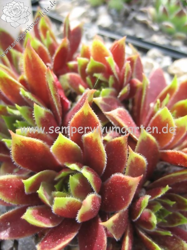 Schöne bunte Rosetten, die dichte Polster bilden. Die grünen Blattenden fallen besonders im Sommer auf.