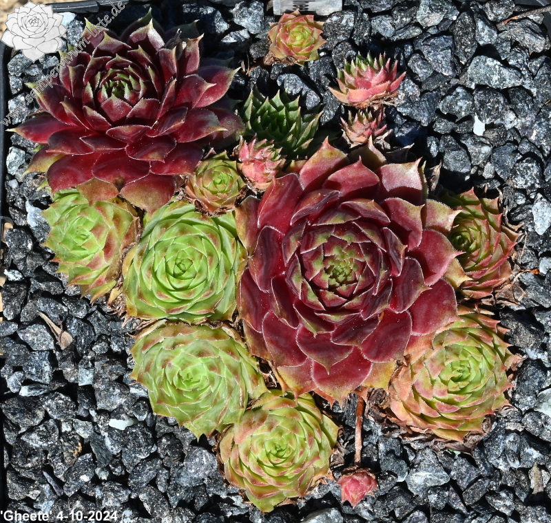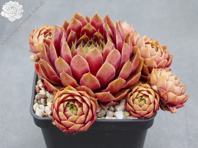 Rosetten bis 5 cm, Blätter oval, lang bespitzt, Mischtöne gelborange - pastellgrün