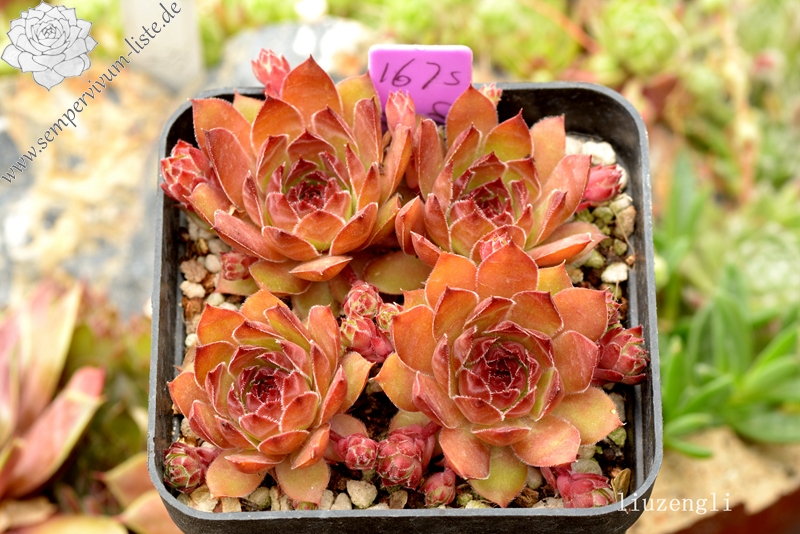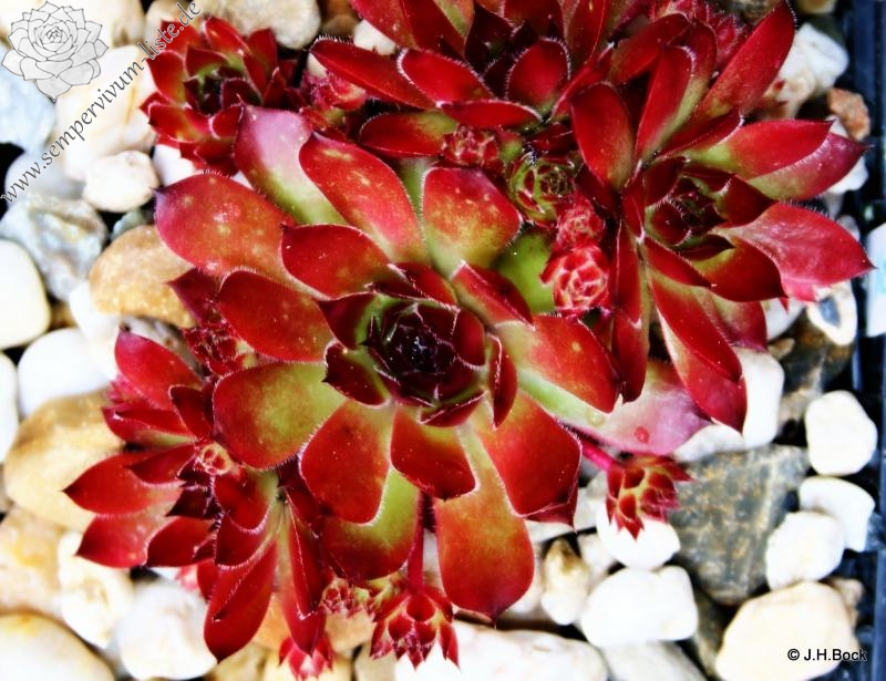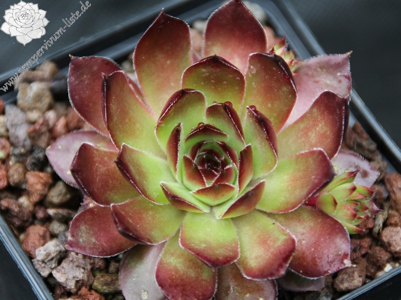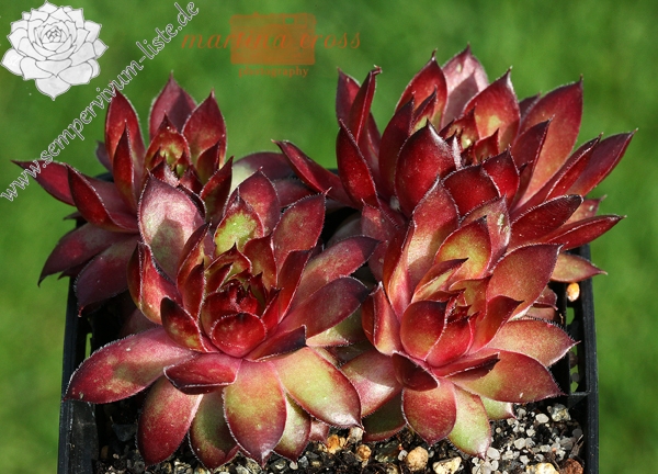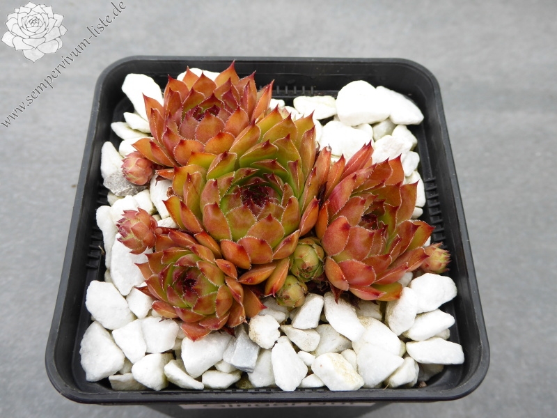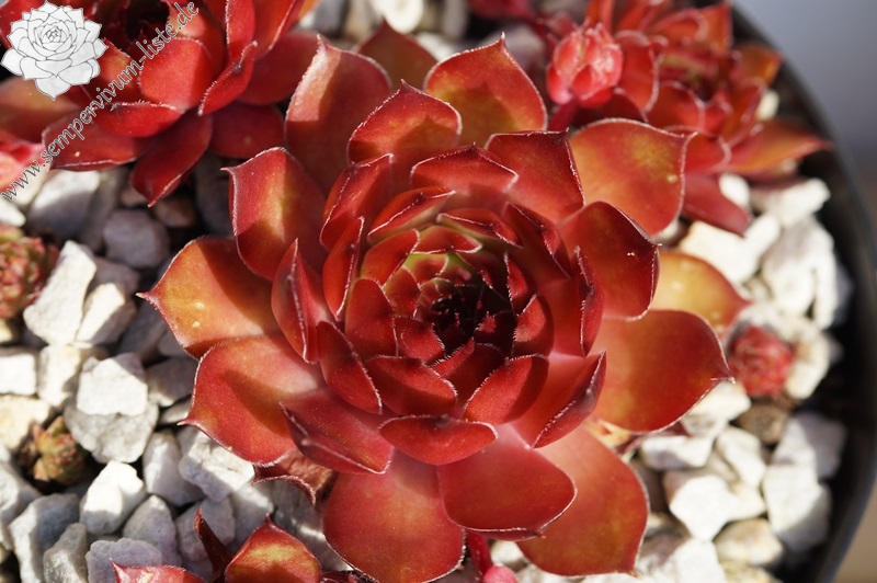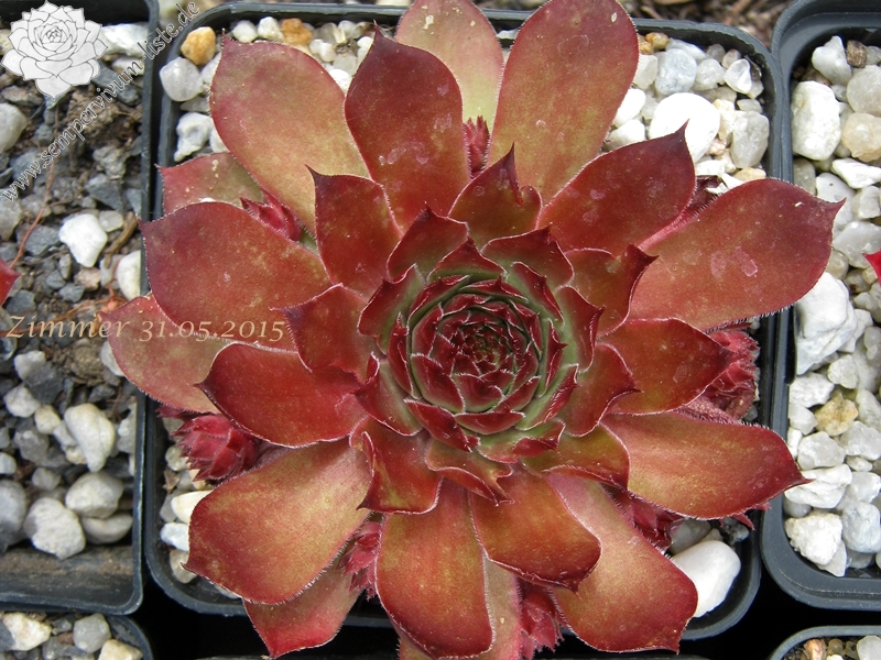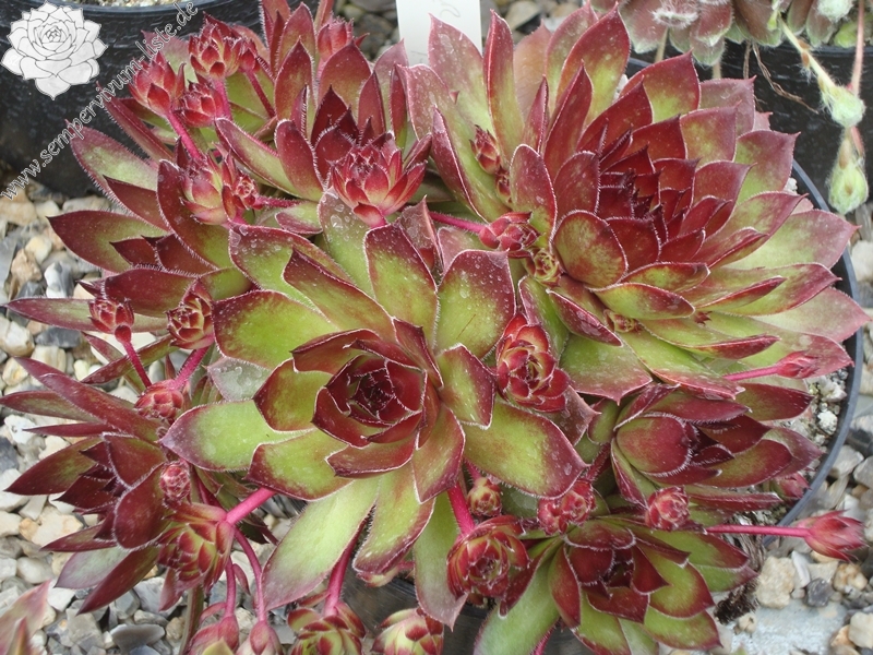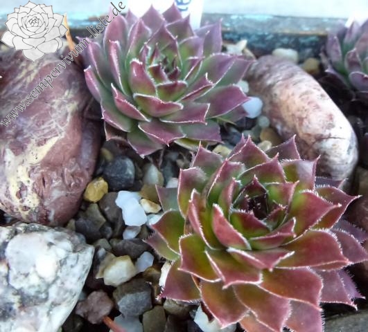 Sempervivum 'Ginger Nut' ist eine rötliche Sorte. Die mittelgroßen Rosetten bilden dicht Polster und sprossen willig. Im Frühjahr zeigen die Blattenden auffallend rötliche Farben. Im Sommer wird der rote Farbton immer weniger und zeigt sich nur noch an den Blattspitzen.