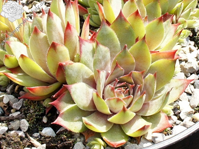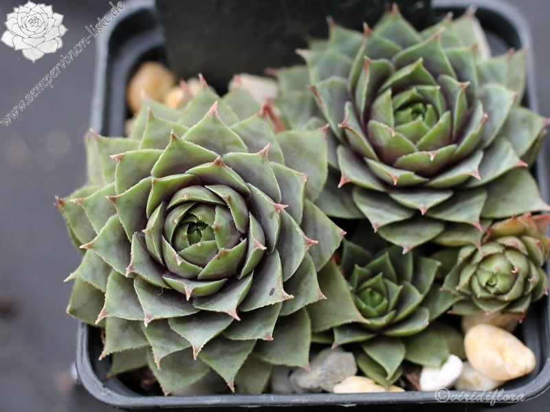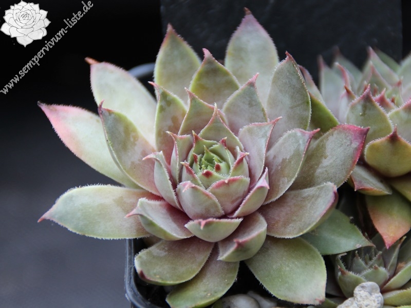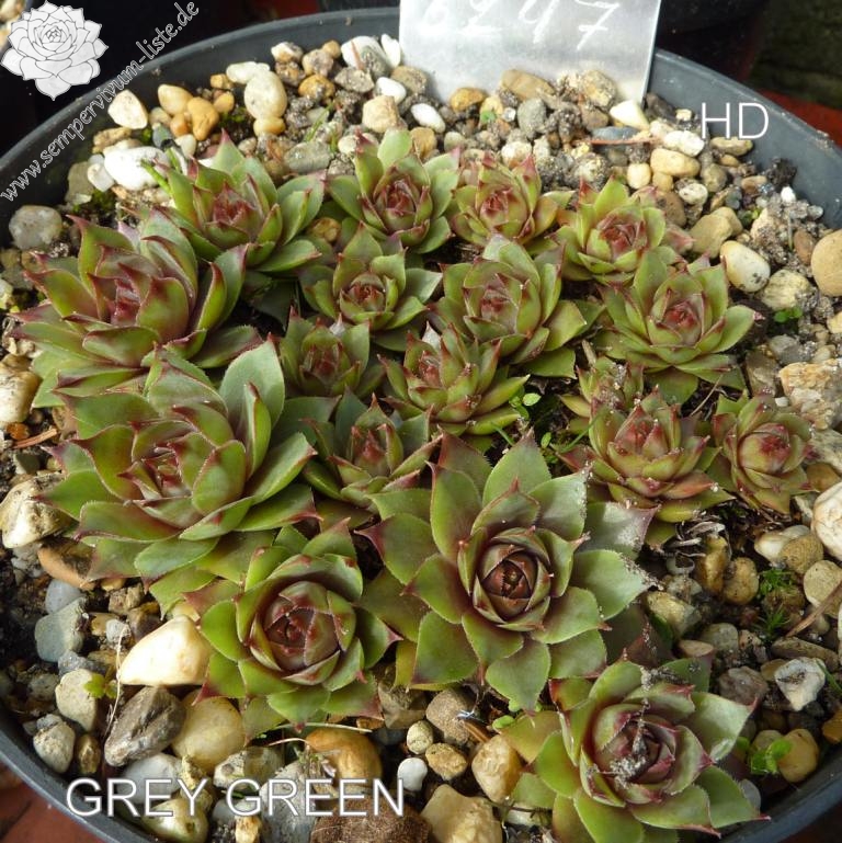 Eine großrosettige Sorte aus den 70er Jahren von David Ford: Wie der Name schon sagt, wechseln die Rosetten ihre Farben in unterschiedlichen Grau- und Grüntönen.