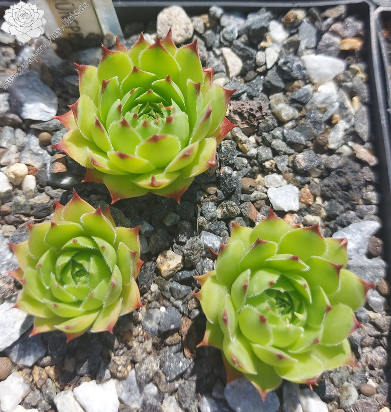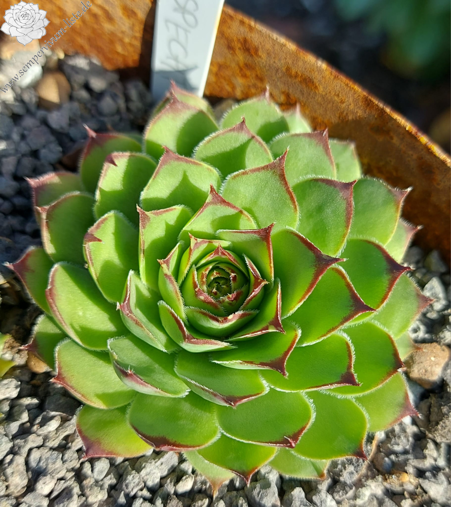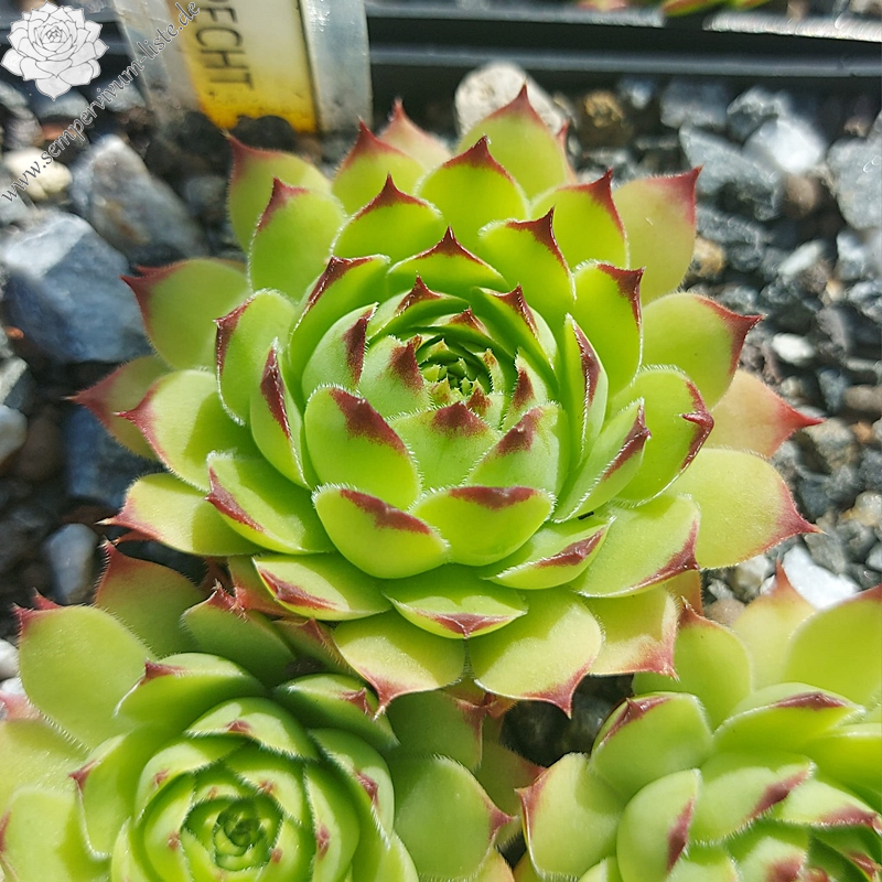 Frischgrüne Rosetten, die besonders im Frühjahr kräftig rote Blattenden zeigt. Diese tolle, ältere Züchtung bildet leider nur wenig Nachkommen!