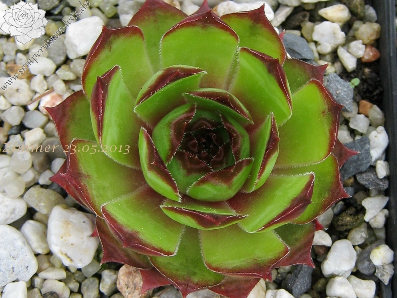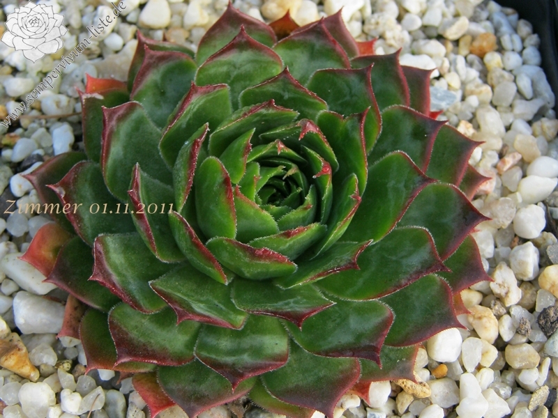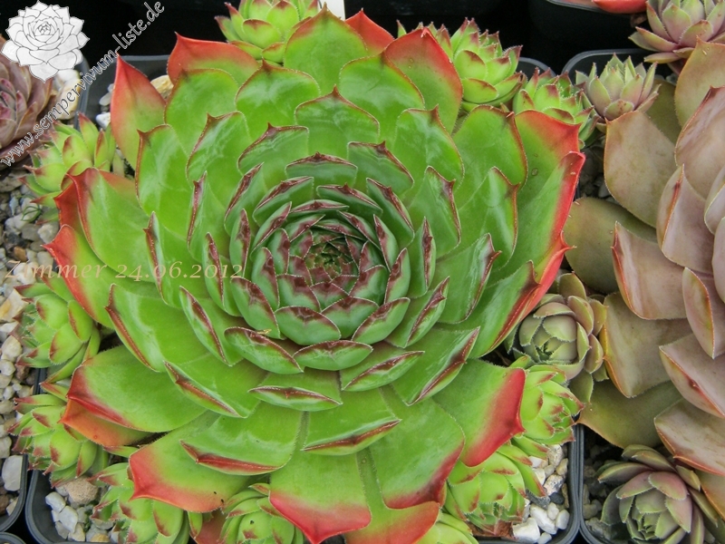 Frischgrüne, offene Rosetten, mit kräftig gefärbten Blattenden. Schöne Rosettenform!