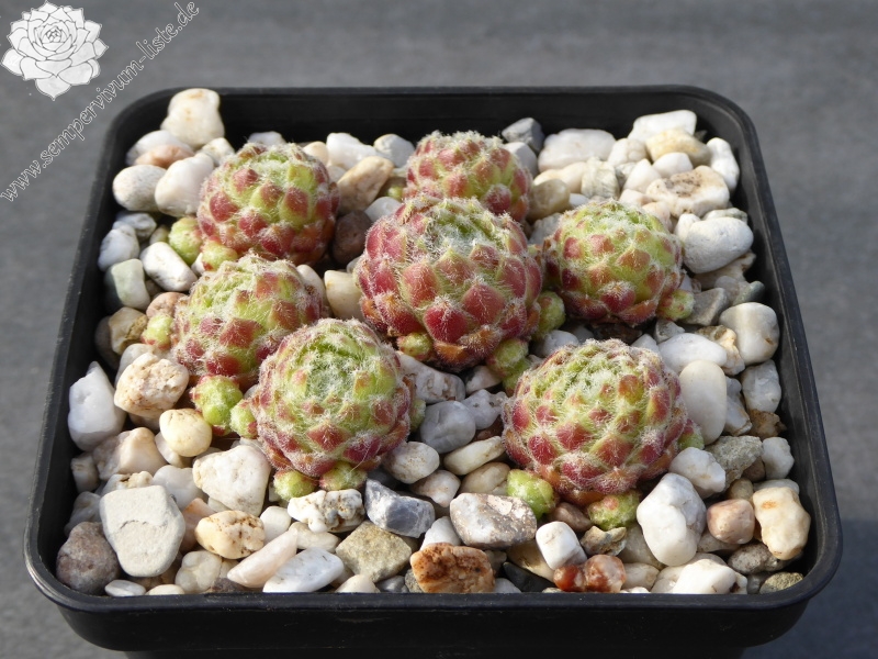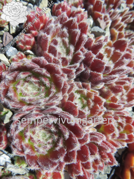 Sempervivum ‚Gwyneira‘ ist ein kleinerer, wüchsiger Typ, der an den Blatträndern stark behaart ist und schnell dichte Polster bildet.