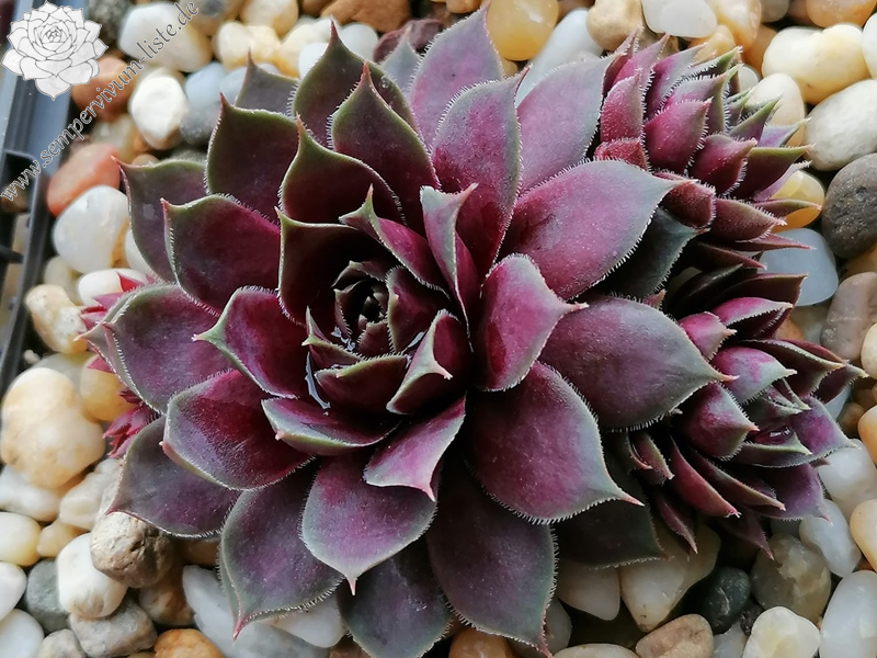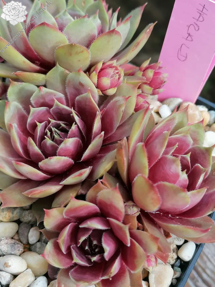 Die Mutterpflanze ist Andinn Grey Eminence, die Aussaat erfolgte im Jahr 2020. Diese Pflanze ist eine meiner farbenfrohesten Züchtungen. Im Winter dominieren die grünen, silbernen, pastelligen und rötlichen Farbtöne, aber sobald die Temperaturen wärmer werden und sie volle Sonne bekommt, ändert sich diese. Von der Mitte heraus leuchtet sie in Farbpalette Magenta und pink. Richtung Blattrand werden die Blätter immer heller, sie erleuchten in beige, gelb und grün. Die Rosetten sind ca. 5 cm groß im Durchmesser, kompakt. Sie können natürlich viel größer werden bei nährstoffreicherem Substrat. Die Blätter sind sukkulent, am Blattende verlaufen sie in einem spitzen Stachel. Am Blattrand befinden sich kleine, zarte Wimpern. Ab Ende Mai zeigt sie ihrer vollen Pracht, sie leuchtet rot von innen heraus. Sie kindelt sehr gut, sie ist einer meine kindelreichesten Züchtungen.