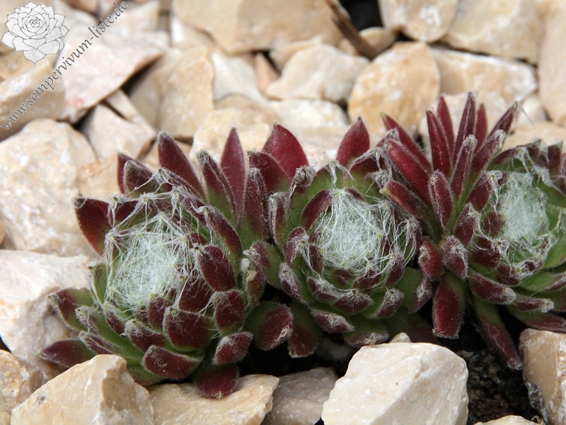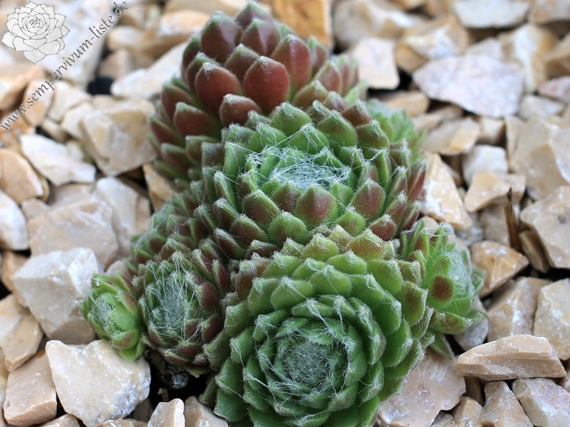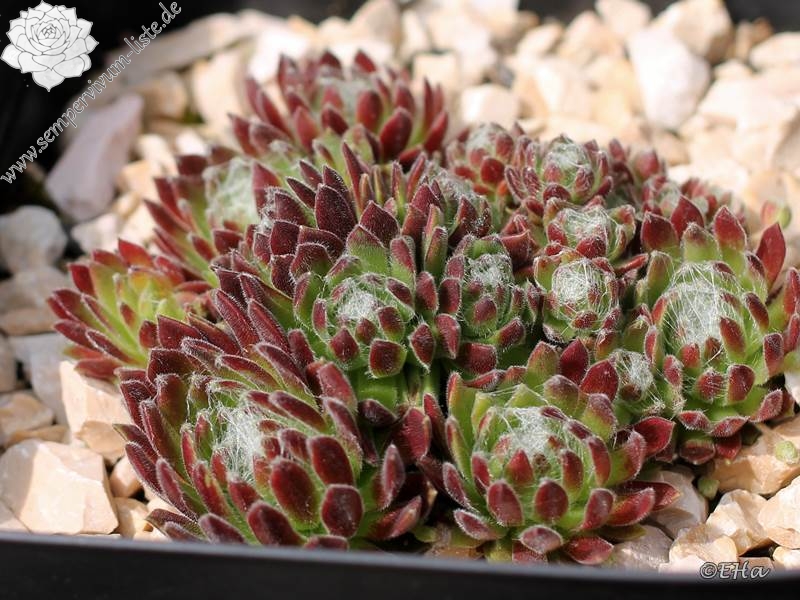Ein schöner Spinnweb-Hauswurz. Die leichte, weiße Behaarung passt sehr gut zu den farbigen Rosetten. Die Pflanze ist gut wüchsig. Hat mir 2009 sehr gefallen!