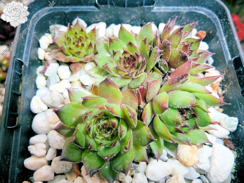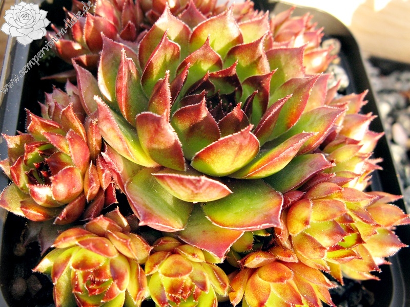 Ein schöner Hauswurz, welcher besonders in den Sommermonaten durch die leuchtende Färbung auffällt. Die mittelgroßen, knospenförmigen Rosetten sprossen willig.