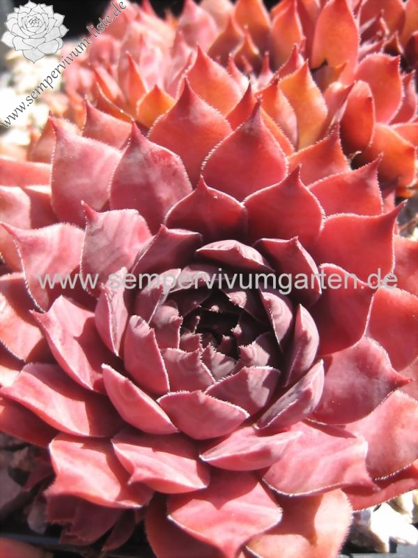 Sempervivum 'Havendijks Next' ist ebenfalls eine wüchsige Kreuzung mit besonderem Charme. Die größeren, dunklen Rosetten sprossen gut. Besonders schön ist die kräftige Sommerfärbung mit den dunklen Spitzen.