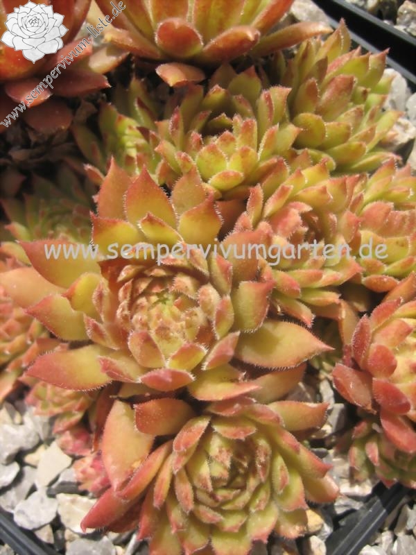 Die kleineren Rosetten bilden schnell dichte Polster und zeigen im Sommer eine helle Färbung.