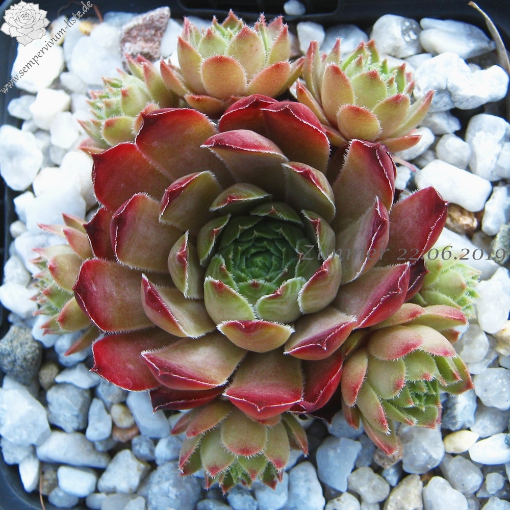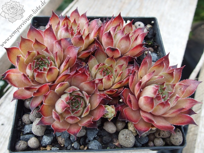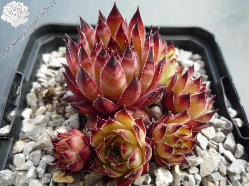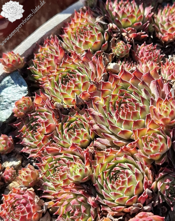 Eine besonders im Sommer auffallende Pflanze. Sie besitzt auch Sempervivum calcareum Blut. Ein richtiger Hingucker, der eine besonders bunte Wirkung besitzt!