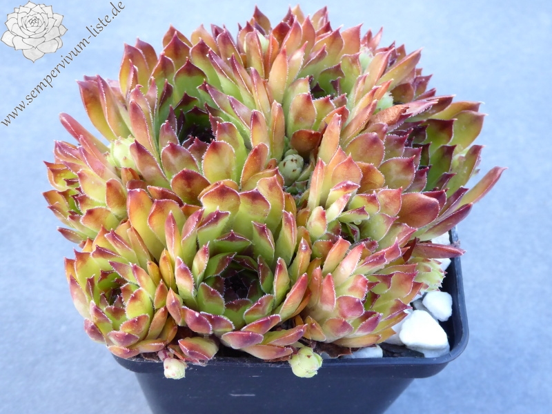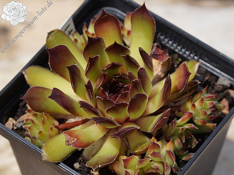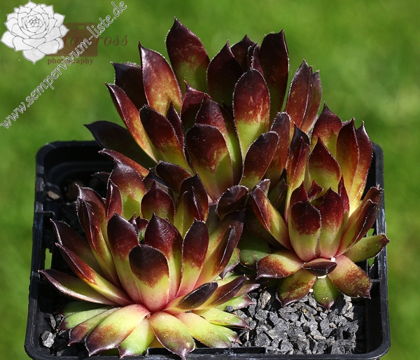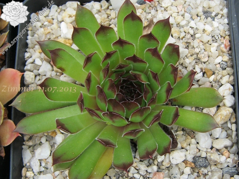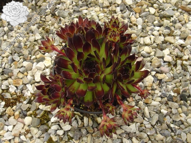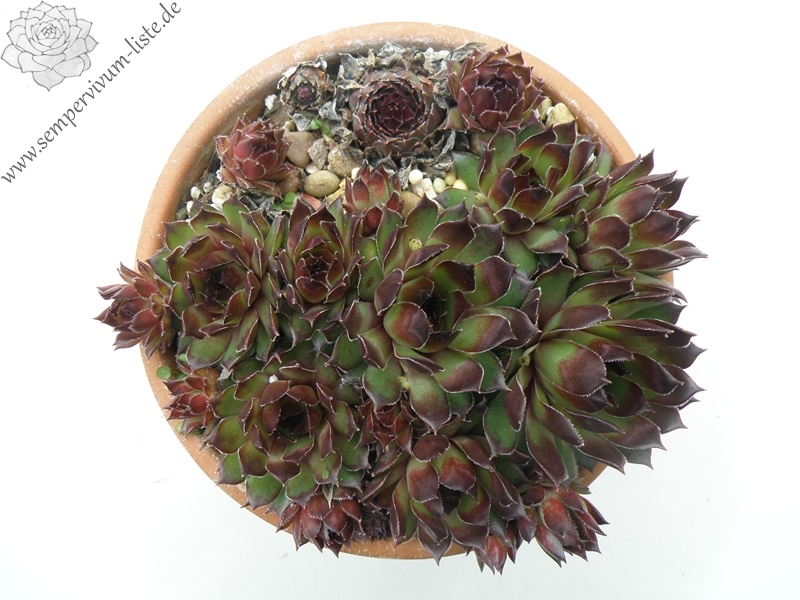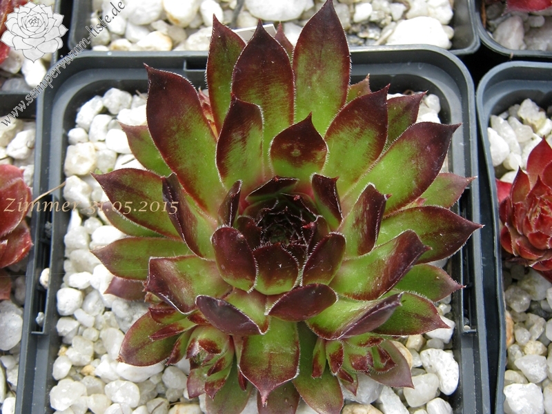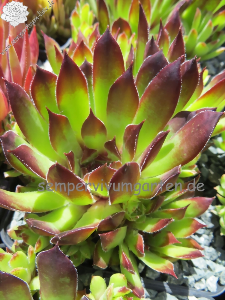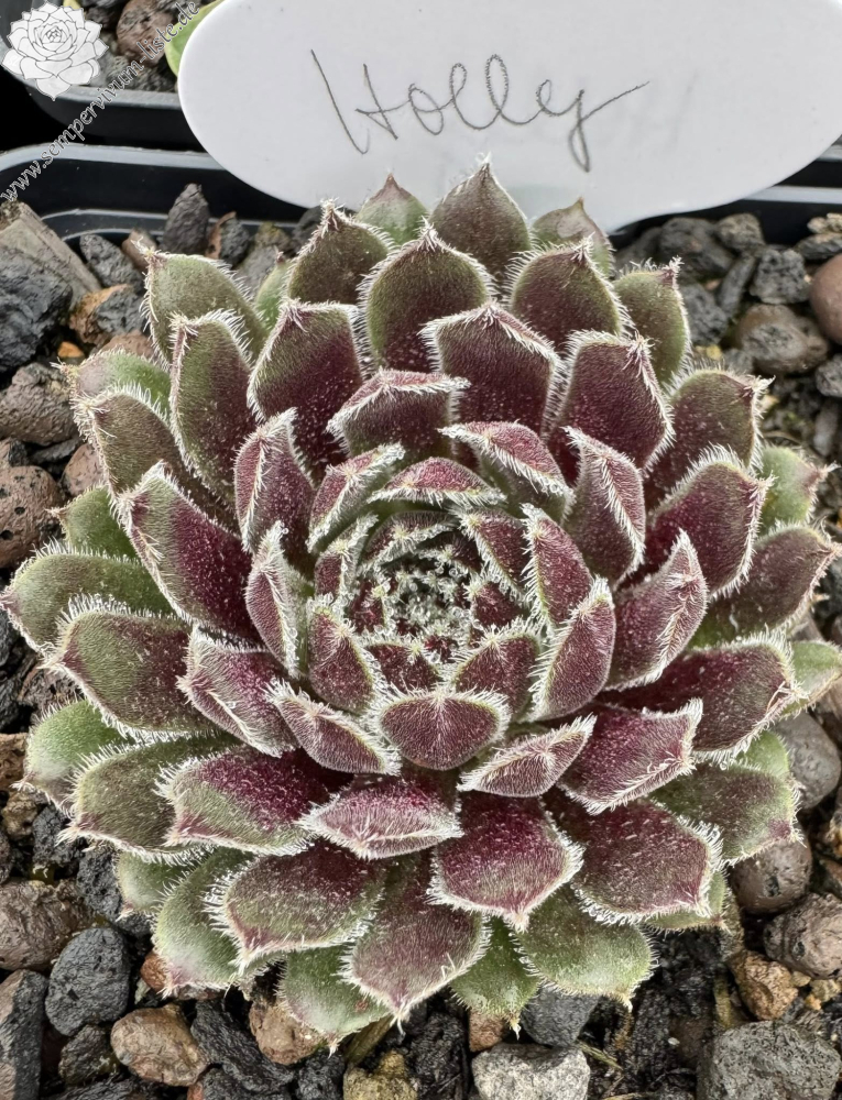 Sempervivum 'Holly' ist ein größerer Hauswurz mit ganz dunkel gefärbten Blattenden. Die dunkle Färbung zieht sich weit ins Rosettenzentrum und erzeugt dadurch eine besondere Wirkung. Ein tolle Pflanze, die eine weite Verbreitung verdient.