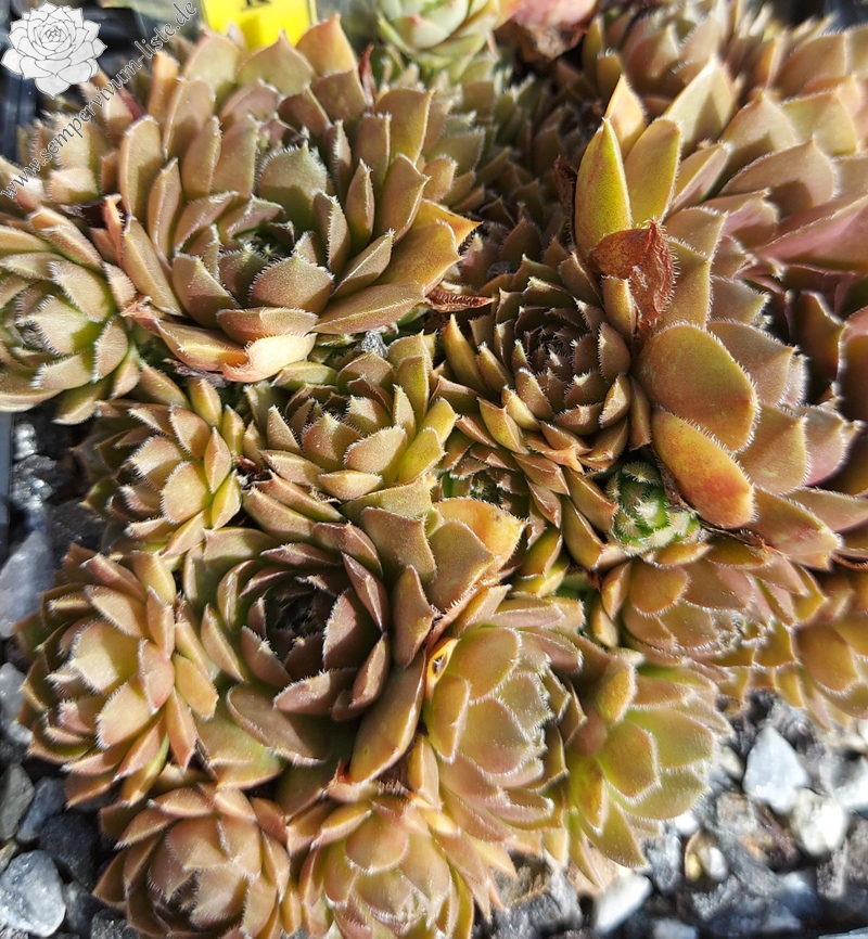 Bislang ist diese Sorte in Europa unbekannt. Sie stammt von einer amerikanischen Gärtnerei namens Wild Ginger Farm. Sie formt kleinere bis mittelgroße Rosetten in braunen Tönen. Die Züchter schreiben von einem Durchmesser bis zu 10 Zentimeter, bei uns werden sie jedoch nur halb so groß. Die Blätter sind recht glänzend und besitzen eine langezogene Spitze. Vielleicht mit S. marmoreum 'Brunneifolium' im Blut?