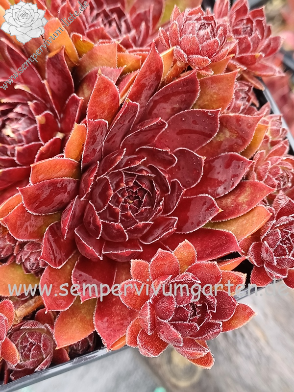 Mit Sempervivum 'Joker' haben wir einen ganz neuen Hauswurz im Sortiment, der das ganze Jahr über schöne Rottöne zeigt. Die mittelgroßen Rosetten können einen Durchmesser von 6 cm erreichen und besitzen schmale Blätter. Dieser robuste Hauswurz gefällt mir besonders im frühen Sommer durch die Aufhellung der äußeren Blattspitzen. Die rote Färbung ist sehr stabil und zeigt auch im Sommer keine Schwächen. 'Joker' ist unempfindlich, sprosst willig und zeigt nur wenige Blüten. Die Rosetten bilden schnell dichte Polster und besitzen einen ganz besonderen Charm!
