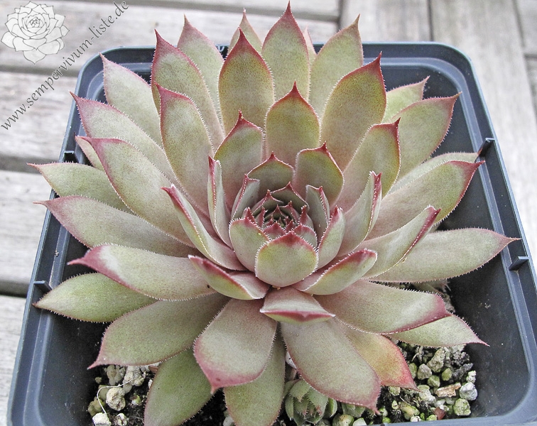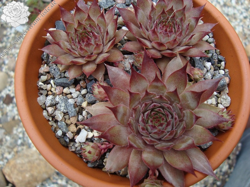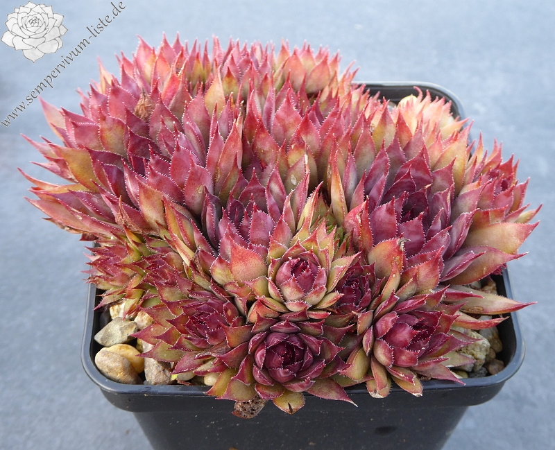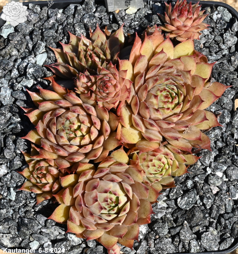 Es gibt immer wieder einige Hybriden die mir im Herbst fast noch besser gefallen als in den Frühlingsmonaten. Auch 'Kautangel' gehört zu dieser Gruppe. Eine großrosettige S. tectorum Hybride aus Belgien. Zum Ende des Jahres marmorierte Blätter in olivgrünen und violettrosa Farbtönen.