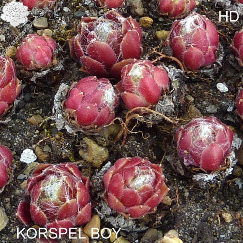 Sempervivum 'Korspel Boy' ist eine mittelgroße Züchtung die auch Spinnwebblut besitzt. Die Blattspitzen sind leicht bewollt.