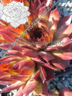 Sempervivum 'Korspelse Obelide' besitzt mittelgroße Rosetten und sind wüchsig. Besonders die leuchtende Sommerfärbung gefällt mir sehr gut. An den Blattböden zeigen sich ganz helle Farben. Die Blattenden sind leuchtend rot gefärbt. Die kühle Wirkung bleibt trotz der leuchtenden Färbung gut erhalten. Eine sehr schöne Pflanze.
