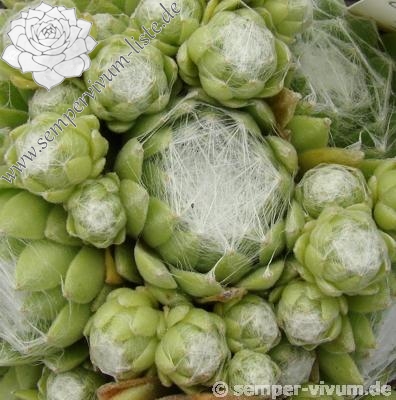 Rosetten 1-2 cm, kugelig, grün mit weißen Spitzen