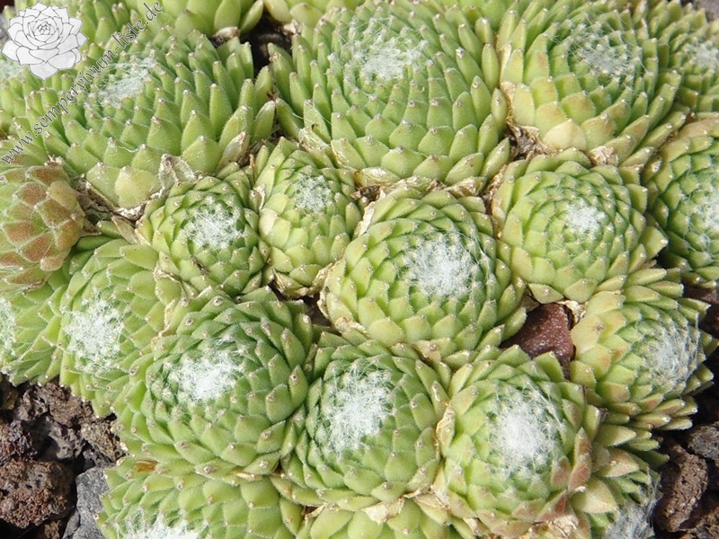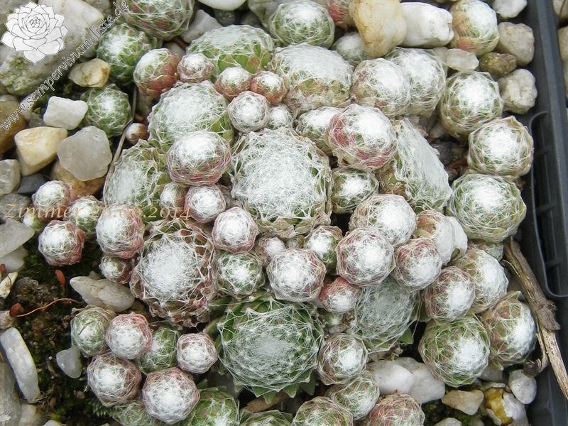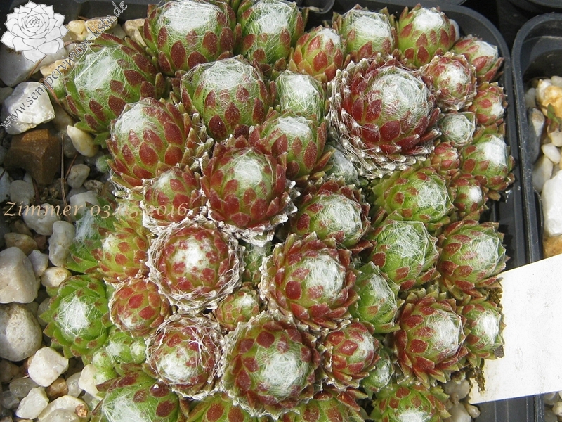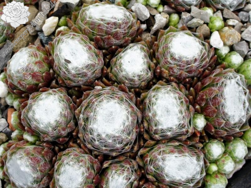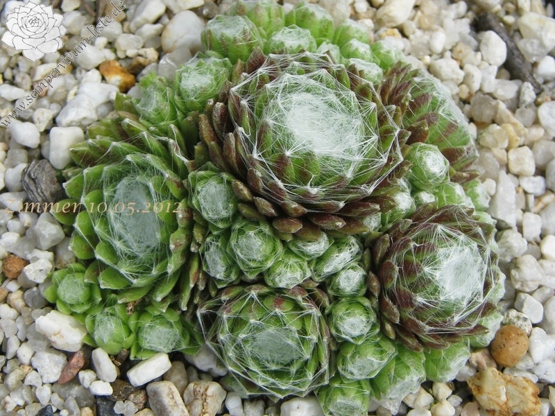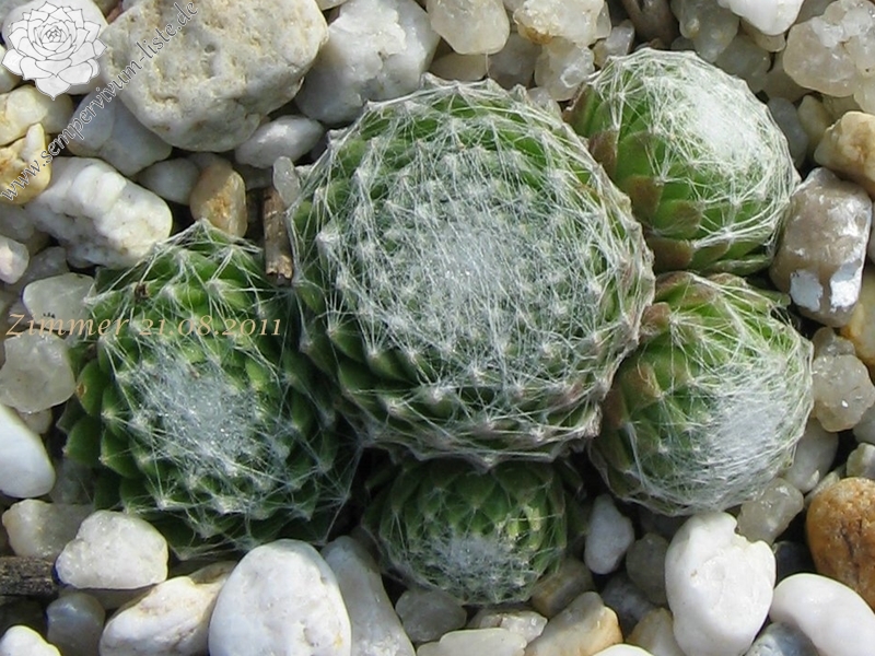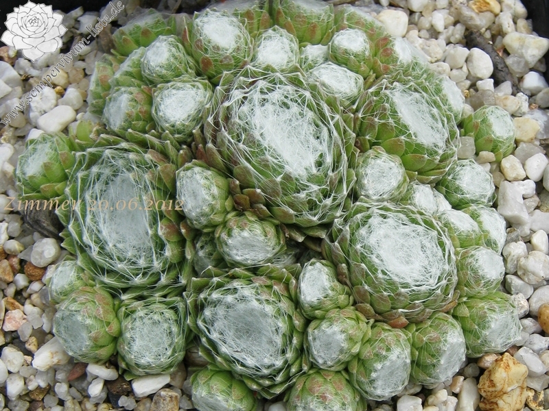 Rosetten 2-3 cm, sehr dicht, grün, weiße Spinnweben