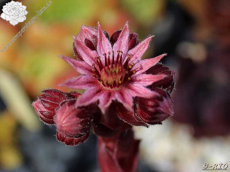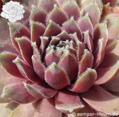 mittelgroße Rosetten, grau in lila übergehend, mit haarigen Kanten und Haarbüscheln an der Spitze