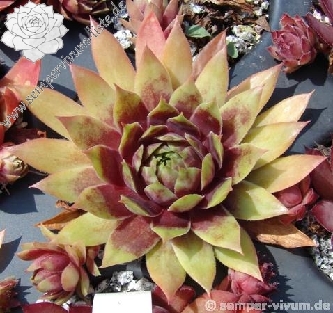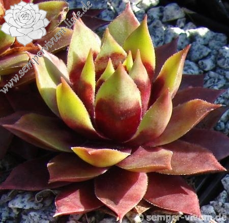Eine neue Züchtung, die im Sommer sehr große, helle Blattenden zeigt. Die Rosetten erreichen einen Durchmesser von 10cm und sprossen willig. Sie bildet lockere Polster. Ich habe mir von dieser Kreuzung eigentlich mehr erwartet – vielleicht unter anderen Kulturbedingungen!