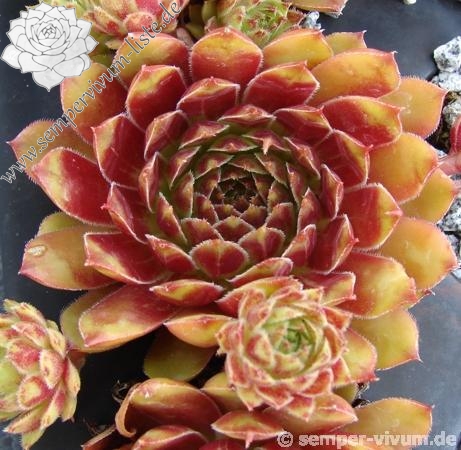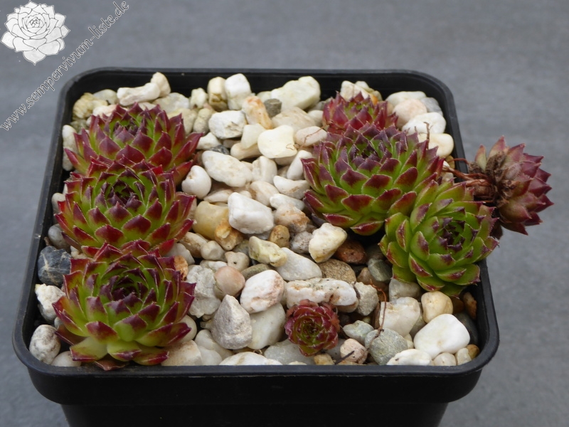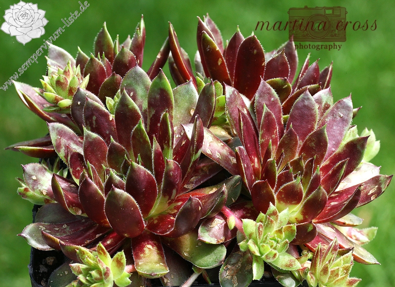 Eine schöne Züchtung, die sich sehr gut präsentiert. Die wüchsigen Rosetten sprossen gut und bilden schnell dichte Polster. Im Sommer geht die rote Färbung zurück und verwandelt die Pflanzen komplett! Sie hat mir dieses Jahr besonders gut gefallen.