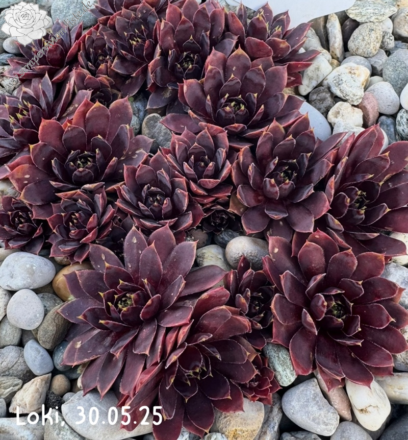 'Loki' gehört zu den dunklen Sorten mit schwarz-bläulicher Frühjahrsfärbung der inneren Rosettenblätter mit leichter blauer Marmorierung. Die äußeren Blätter mit zarter Bewimperung sind rotbraun und unterstreichen die dunkle Färbung noch. Später werden die Spitzen mit den deutlichen Dornen der Blätter hellgrün, vor allem die der Herzblätter. Wie die Mutterpflanze bildet 'Loki' auch Cristate. Die offenen Rosetten werden ca. 9 cm groß.