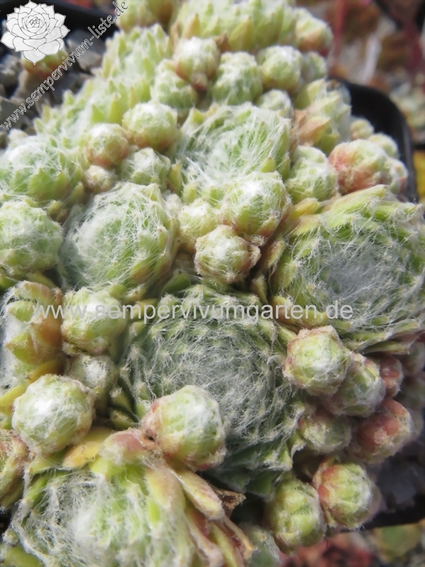Die wüchsigen Pflanzen von Sempervivum 'Losbol' bilden schnell dichte Polster. Die hellgrünen Rosetten sind nur leicht besponnen.