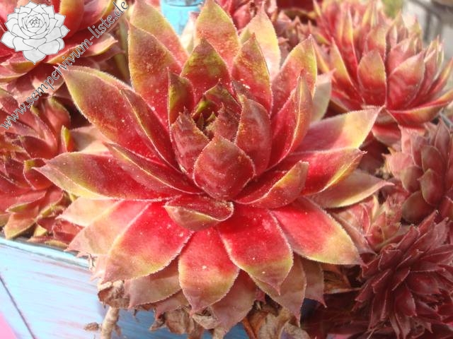 Ein mittelgroßer Sämling von 'Red Cross'. Im Frühjahr haben die Blätter einen rot-metallischen Glanz und grüne Spitzen. Die Farbe wechselt zum Sommer hin in schöne Pastelltöne. Die Pflanze ist sehr stabil in großer Hitze.