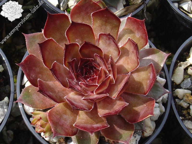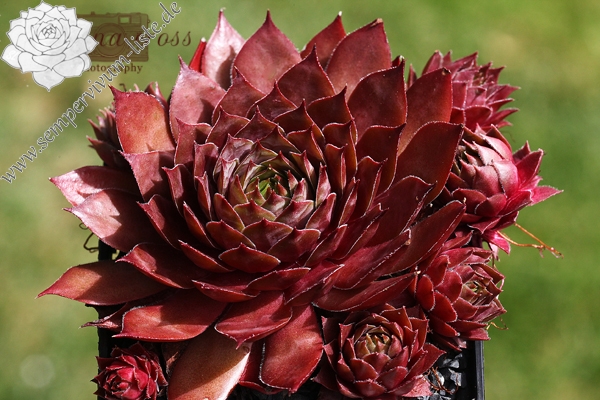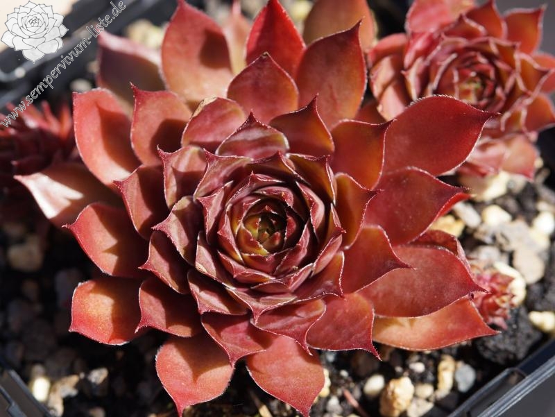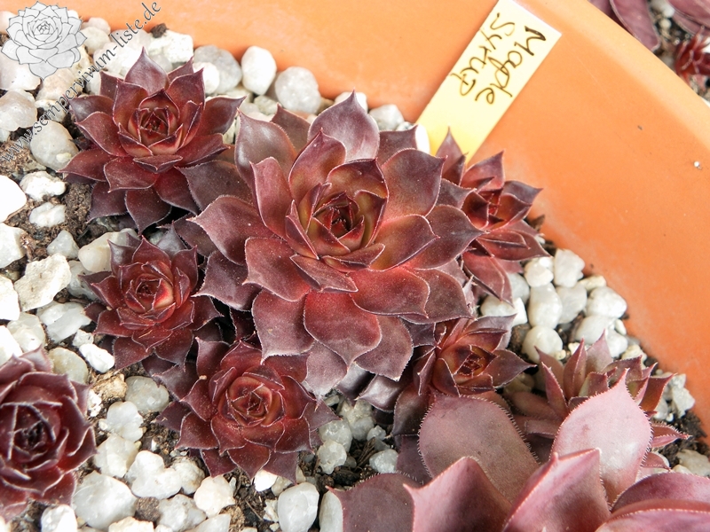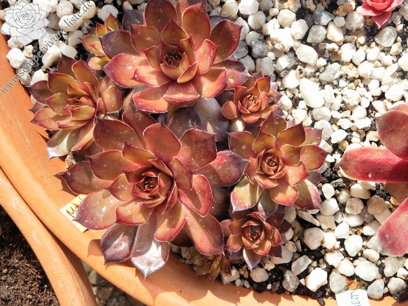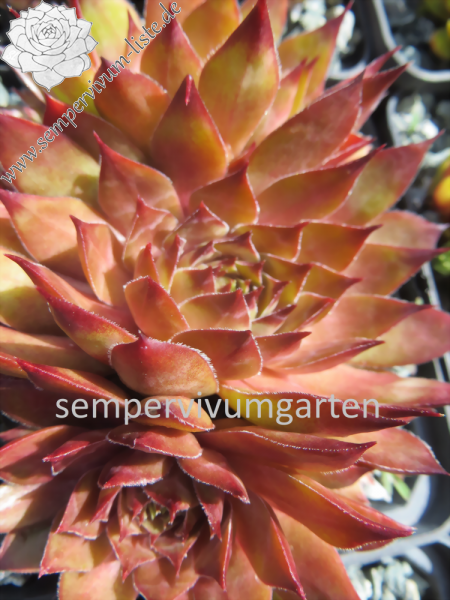 Sempervivum ‘Maple Syrup’ besitzt mittelgroße Rosetten und sprosst gut. Die Farben leuchten den ganzen Sommer über und sind wirklich einmalig schön.