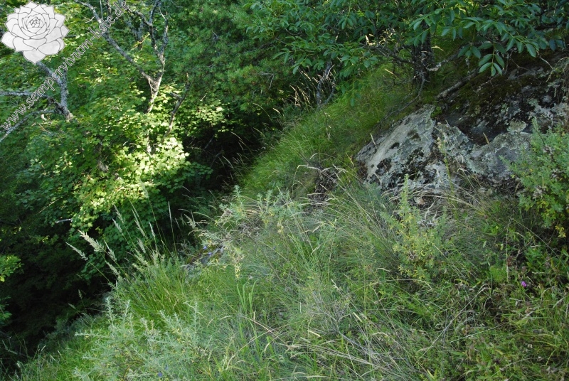 Lokalität: beim Städtchen Rila, dort in einem spärlichen Wald an einem steilen Abhang über dem Kloster (400m nordöstl.) an einem südlich orientierten Felsen